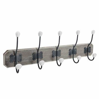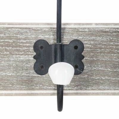 Wieszak ścienny do przedpokoju Ruben jasny szary marki Atmosphera to stylowe i praktyczne rozwiązanie do organizacji codziennych akcesoriów. Wykonany z solidnej płyty MDF i metalu, wyposażony w pięć wygodnych haczyków z ozdobnymi ceramicznymi gałkami, wieszak ten łączy trwałość z ponadczasowym urokiem stylu vintage. Dzięki szerokości 60,5 cm i kompaktowej głębokości 7,5 cm świetnie sprawdzi się nawet w niewielkim przedpokoju, zapewniając miejsce na kurtki, torby czy klucze.