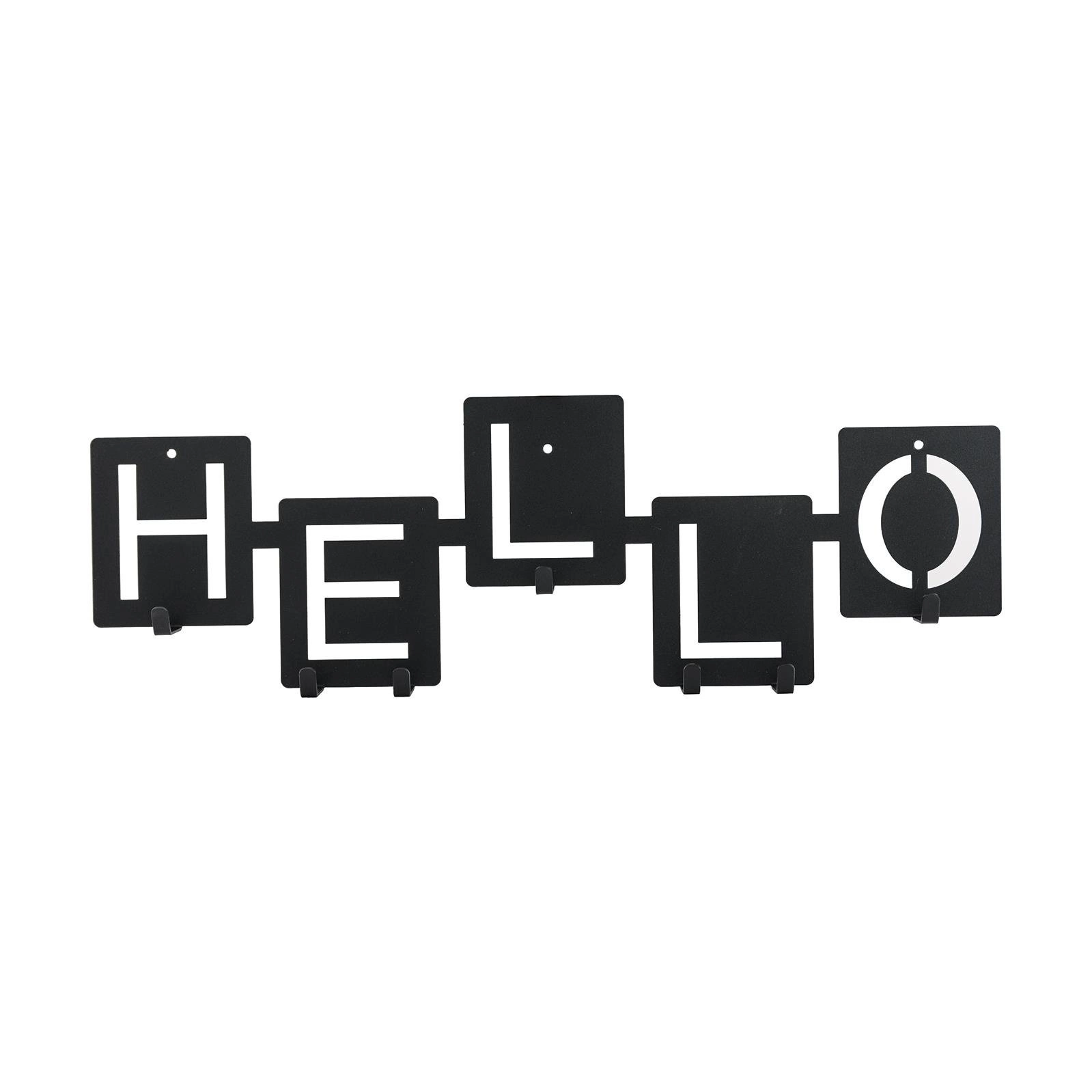 Wieszak ścienny Hello sprawdzi się w każdym nowoczesnym przedpokoju, recepcji lub holu. Wycięte precyzyjnie litery na nierównomiernie umieszczonych kwadratach tworzą ciekawą kompozycję kształtów. Proszkowo malowany metal odporny jest na uszkodzenia oraz pobrudzenie. Dzięki 7 haczykom, o maksymalnym obciążeniu aż do 3kg każdy, można wieszać na nim kurtki, klucze lub nawet torby. Produkt dostepny jest w dwóch kolorach. Maksymalne obciążenie listwy to 21kg. Do wieszaka załączony jest zestaw montażowy, któy składa się z kołków, zaślepek i śrubek. Wysokość: 23cm Szerokość: 60cm.