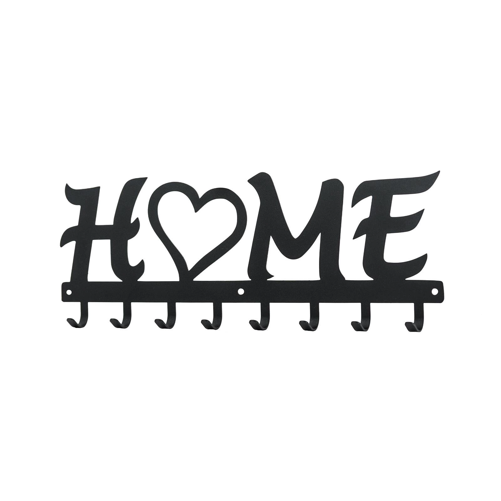 Wieszak ścienny Home sprawdzi się w każdym przytulnym przedpokoju,recepcji lub holu. Wycięte precyzyjnie laserowo litery tworzą ciekawą kompozycję kształtów. Proszkowo malowany metal odporny jest na uszkodzenia oraz pobrudzenie. Dzięki 8 haczykom, o maksymalnym obciążeniu aż do 3kg każdy, można wieszać na nim kurtki, klucze lub nawet torby. Produkt dostepny jest w dwóch kolorach.Maksymalne obciążenie listwy to 24 kg. Do wieszaka załączony jest zestaw montażowy, który składa się z kołków, zaślepek i śrubek. Wysokość: 17cm Szerokość: 47cm.