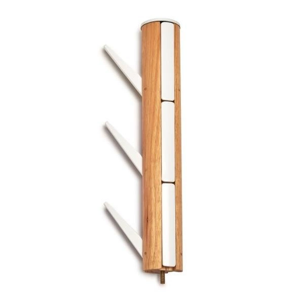 Posiada on dziewięć otwieralnych, odlewanych aluminiowych haczyków, które mogą być wepchnięte z powrotem w drążek, gdy nie są używane. Taki system pozwala na zyskanie większej przestrzeni i zachowanie uporządkowanego wystroju wnętrza. Wieszak na ubrania Flapper dostępny jest w różnych kolorach, dzięki czemu z łatwością dopasujesz go do własnych upodobań.