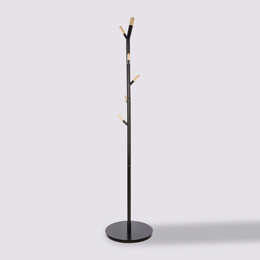 Czarny wieszak stojący idealnie wpisuje się w industrialne i nowoczesne wnętrza, stając się nie tylko funkcjonalnym, ale i dekoracyjnym elementem aranżacji. Połączenie matowego metalu z naturalnym drewnem sosnowym nadaje mu wyrazisty, loftowy charakter. Smukła sylwetka wieszaka sprawdzi się zarówno w przestronnych, jak i niewielkich korytarzach, nie przytłaczając wnętrza.