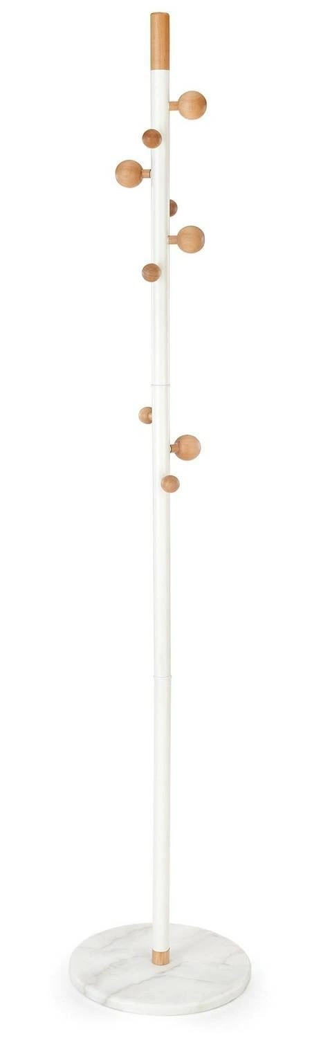 Wieszak Pump zachwyca minimalistyczną formą oraz subtelnym połączeniem bieli z naturalnym odcieniem drewna. Jego prosta, smukła sylwetka sprawia, że doskonale wpisuje się w aranżacje skandynawskie, nowoczesne czy boho, dodając wnętrzu lekkości i harmonii. To nie tylko praktyczny wieszak do przedpokoju, ale także stylowy element dekoracyjny, który podkreśli charakter Twojego domu.