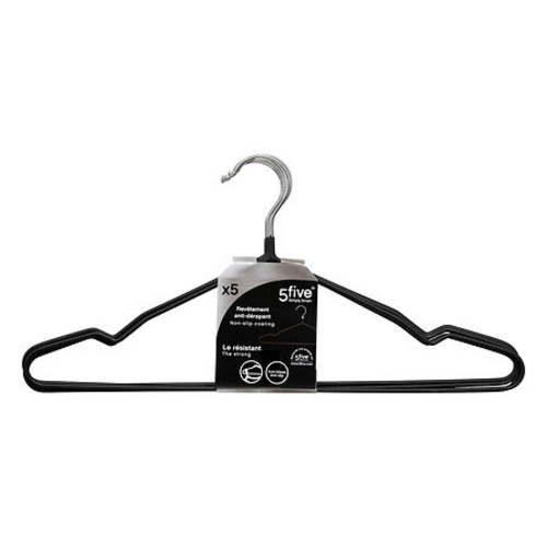- Zestaw składa się z 5 metalowych wieszaków w kolorze czarnym.