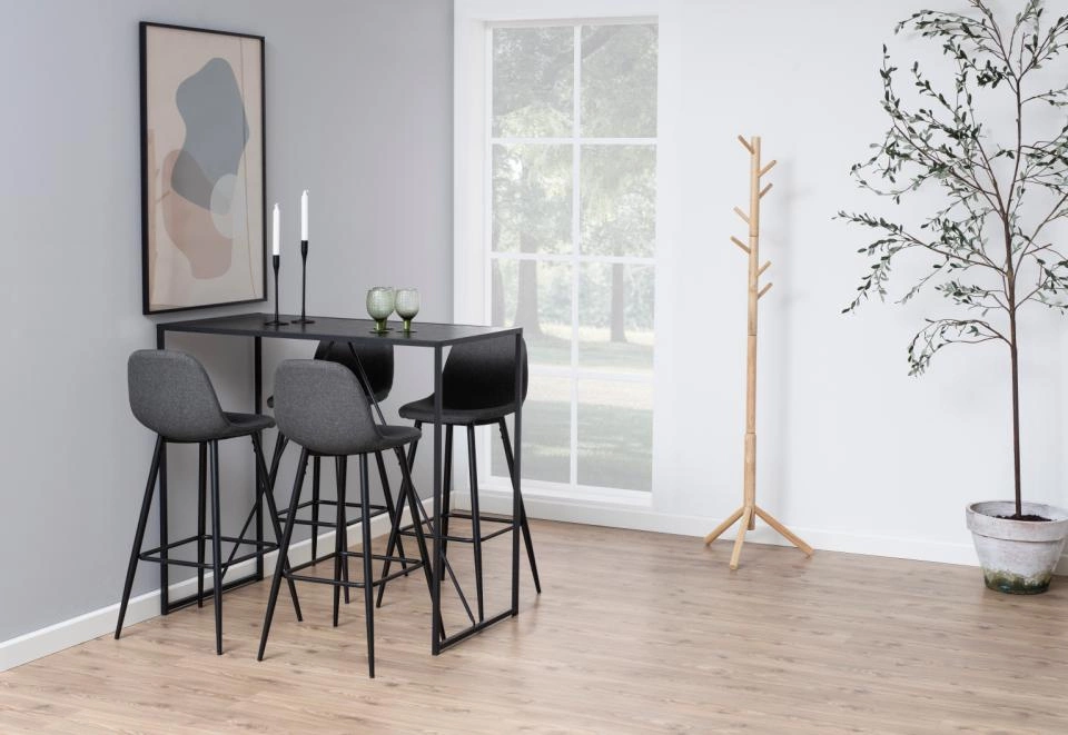 Wilma to zgrabne, bardzo nowoczesny stołek barowy. Charakteryzuje go ciekawa tkanina Sawana light grey 21, którą został obity. Siedzisko oraz oparcie są lekko wyprofilowane aby zapewnić jak najwygodniejszą pozycję do siedzenia. Podstawą stołka są lakierowane proszkowo metalowe czarne nogi. Waga krzesła to tylko 6 kg Maksymalne obciążenie: 120kg .