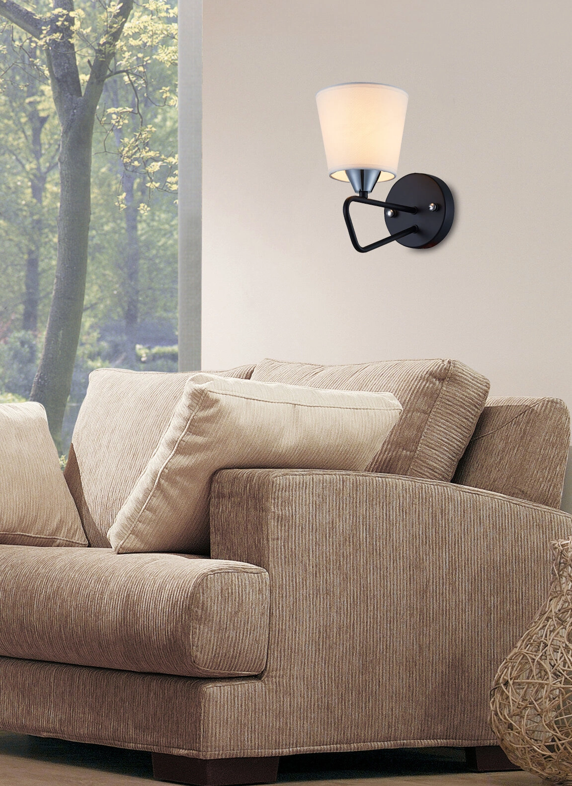 Ten czarny kinkiet ścienny świetnie spisze się zarówno jako nastrojowe oświetlenie w sypialni, jak i praktyczna lampa na ścianę w salonie. Dzięki kompaktowym wymiarom Morley sprawdzi się jako kinkiet nad łóżkiem, kącikiem czytelniczym lub stylowe oświetlenie w strefie wypoczynkowej. Metalowa podstawa zapewnia trwałość, a tkaninowy abażur rozprasza światło, tworząc przytulną, nieoślepiającą poświatę.