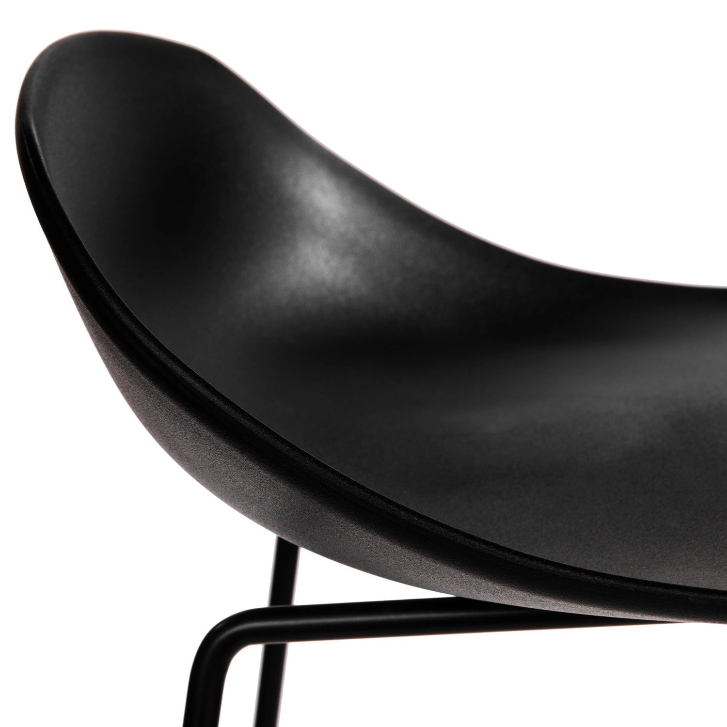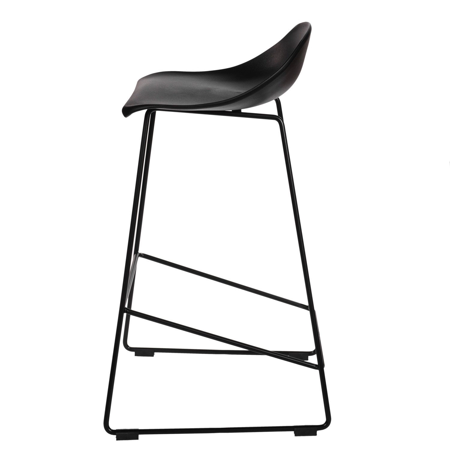 Krzesło barowe Molly to nowoczesna konstrukcja, która sprawdzi się idealnie jako hoker do wyspy kuchennej lub do domowego baru w jadalni. Jego prosta forma zadowoli miłośników minimalizmu. Krzesło barowe posiada wyprofilowane siedzisko, wykonane z tworzywa o wykończeniu matowym oraz metalową podstawę wykończoną w połysku. Współczesną formę podkreślają trzy metalowe pręty, na których wygodnie można oprzeć nogi, zamontowane zostały pod skosem, stwarzające efekt trójwymiarowości. To świetna propozycja do wnętrz komercyjnych takich jak restauracja lub hotel, które stawiają na uniwersalny design. Krzesło występuje w dwóch wersjach wysokości siedziska oraz dwóch kolorach, czarnym oraz białym, które idealnie dopasują się do każdej aranżacji.
