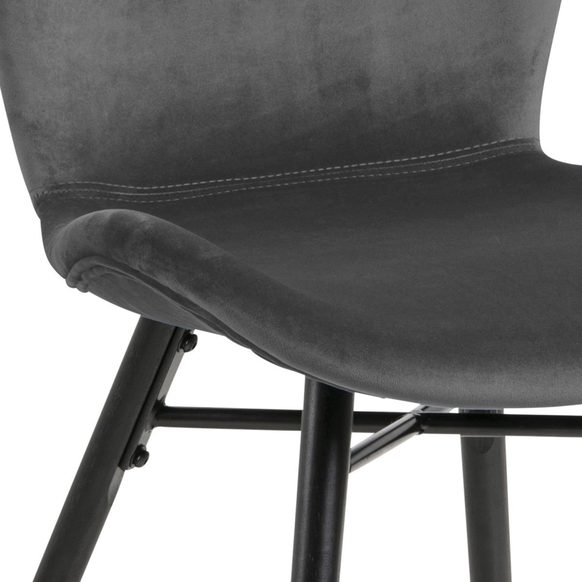 Solidna podstawa krzesła Batilda wykonana została z pomalowanego na czarno drewna dębowego oraz wzmocniona metalowym krzyżakiem. Taka konstrukcja zapewnia stabilność podczas użytkowania oraz wytrzymałość na uszkodzenia mechaniczne. Krzesło posiada też tapicerowane siedzisko welurowe z grubszym obszyciem, co wygląda bardzo efektownie. Tkanina użyta do tapicerowania siedziska to VIC dark grey 28. W kolekcji krzeseł Batilda znajdziesz także krzesła z eko skóry czy pikowane, a także fotele wypoczynkowe i biurowe. Producent zadbał o to by, każdy znalazł coś dla siebie. Różne kolory i materiały pozwalają wykorzystać krzesła tapicerowane Batilda jako krzesła do jadalni, salonu i pokoju nastolatka. Świetnie sprawdzą się też jako krzesła do poczekalni czy gabinetu.