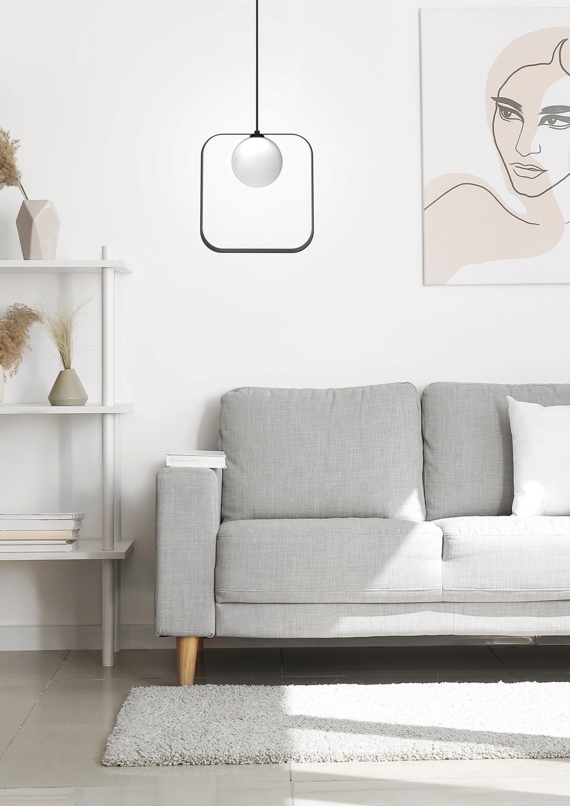 Seria nowoczesnych, minimalistycznych lamp wiszących w dwóch kolorach i dwóch kształtach. Doskonale pasują do nowoczestnych oraz eklektycznych wnętrz. Połączenie metalowej ramy i szklanego klosza nadale lampie niepowtarzalny charakter. Lampa okrągła w kolorze czarny. Żarówka nie jest dołączana dla produktów z zewnętrznym źródłem światła.