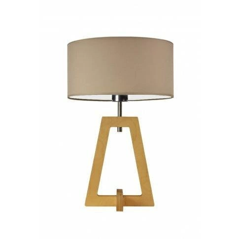 Lampka Clio wyróżnia się ciekawą konstrukcją, tworzoną przez podstawę w kształcie trapezu i tkaninowy abażur.