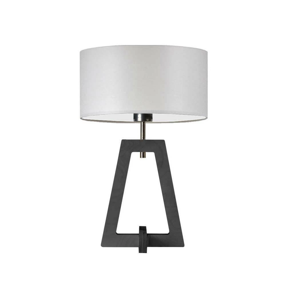 Lampka Clio wyróżnia się ciekawą konstrukcją, tworzoną przez podstawę w kształcie trapezu i tkaninowy abażur.