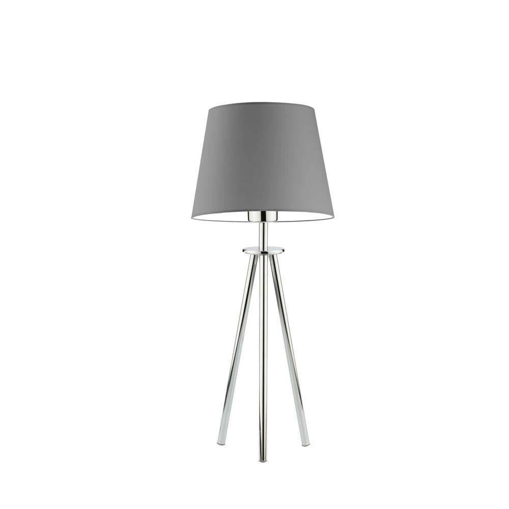 Design lampy Bergen inspirowany jest statywem fotograficznym. Jej nogi wykonane są z trwałego metalu w kolorze chromu. Abażur w klasycznej formie wykonany z tworzywa w kolorze stalowoszarym jest ciekawym elementem dekoracyjnym, który z pewnością będzie zwracał uwagę. Lampę można wykorzystać w biurze czy salonie jak również w sypialni jako lampkę nocną. Ze względu na swoją prostotę będzie pasować do wielu aranżacji, ale najlepiej będzie wyglądać w połączeniu z elementami stylu nowoczesnego, industrialnego i skandynawskiego. Lampa posiada włącznik na przewodzie dla większego komfortu użytkowania.