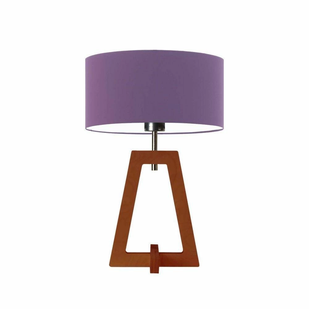 Lampka nocna do sypialni Clio fioletowa glamour z abażurem i mahoniową drewnianą podstawą