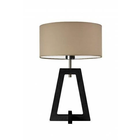 Lampa Clio wyróżnia się ciekawą konstrukcją, tworzoną przez podstawę w kształcie trapezu i tkaninowy abażur.