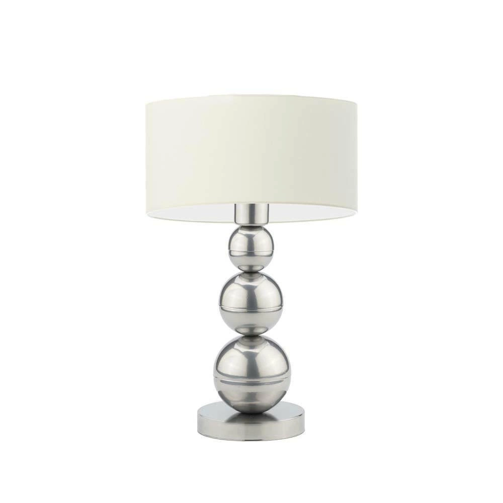Lampka nocna do sypialni nowoczesna HONOLULU z abażurem ecru srebrny stelaż LYSNE 41 cm