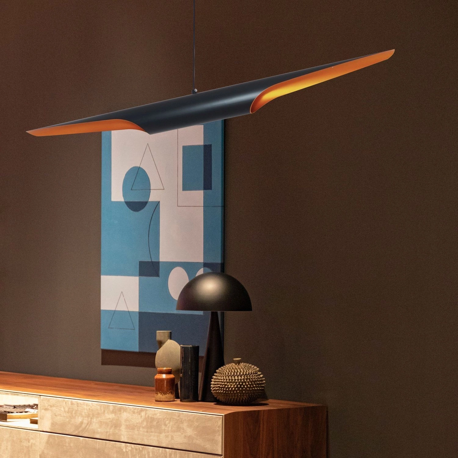 Nowoczesna lampa wisząca BLACK TUBE marki Step into Design to propozycja dla osób poszukujących minimalistycznego, a zarazem wyrazistego oświetlenia do salonu, nad stół lub do kuchni. Wykonana z trwałego metalu w eleganckim czarno-złotym wykończeniu, ma imponującą szerokość 100 cm oraz możliwość regulacji wysokości zawieszenia nawet do 200 cm. To rozwiązanie, które nie tylko zachwyci designem, ale i pozwoli idealnie dopasować światło do potrzeb Twojego wnętrza.