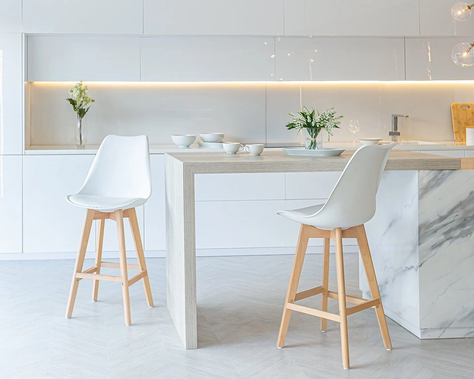 Styl nowoczesny we wnętrzach to kierunek coraz bardziej pożądany wśród osób dekorujących swoje mieszkanie. To nie tylko okazja na wprowadzenie niesamowitej dozy elegancji, ale i postawienie na funkcjonalny, praktyczny wybór. Nowoczesny styl to pojęcie bardzo szerokie, ponieważ tak naprawdę można interpretować je dowolnie, ale jedno jest pewne, ten nurt posiada wyraziste cechy. Właśnie w taki sposób można określić stołek barowy Norden Wood High PP. Inspiracją dla powstania tego modelu było kultowe już Eiffel Chair, które zdobyło uznanie i sławę na całym świecie. Nogi podstawy wykonanej z bardzo wytrzymałego drewna bukowego, ułożone są w charakterystyczny sposób przypominający kształtem najsłynniejszą konstrukcję Paryża. Siedzisko krzesła Norden to za to polipropylenowa muszla o ergonomicznej budowie wyposażona dla większej wygody w miękką poduszkę obszytą ekoskórą. Dobór takich materiałów gwarantuje wytrzymałość i znacznie ułatwia czyszczenie stołka z powstałych ewentualnie zabrudzeń. Dzięki elektryzującej dostępnej kolorystyce możemy stworzyć naprawdę oszałamiające aranżacje. Norden Wood High PP to idealna propozycja do nowoczesnej wyspy kuchennej lub do postawienia stołka barowego w jadalni. To również doskonały wybór do przestrzeni takich jak lokalny bar lub minimalistycznie urządzona restauracja. Taki stołek barowy stanie się jednocześnie elementem dekoracyjnym i sprawi, że siedzący na nim goście będą mogli poczuć się komfortowo i przytulnie.