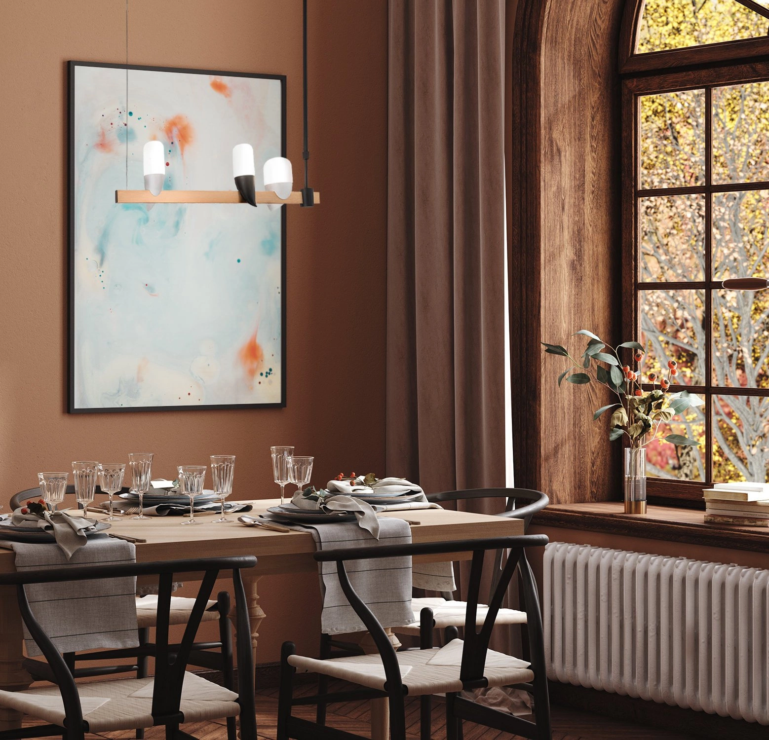 Elegancka ale i bardzo oryginalna seria lamp z motywem ptaków na gałęzi. W skład rodziny wchodzą trzy lampy wiszące, kinkiet oraz lampa stołowa ze zintegrowanymi źródłami światła LED. Seria występuje w dwóch wersjach kolorystycznych. Idealnie nadaje się do salonu, jadalni, sypialni, gabinetu. Lampa wisząca z trzema ptakami na gałęzi.