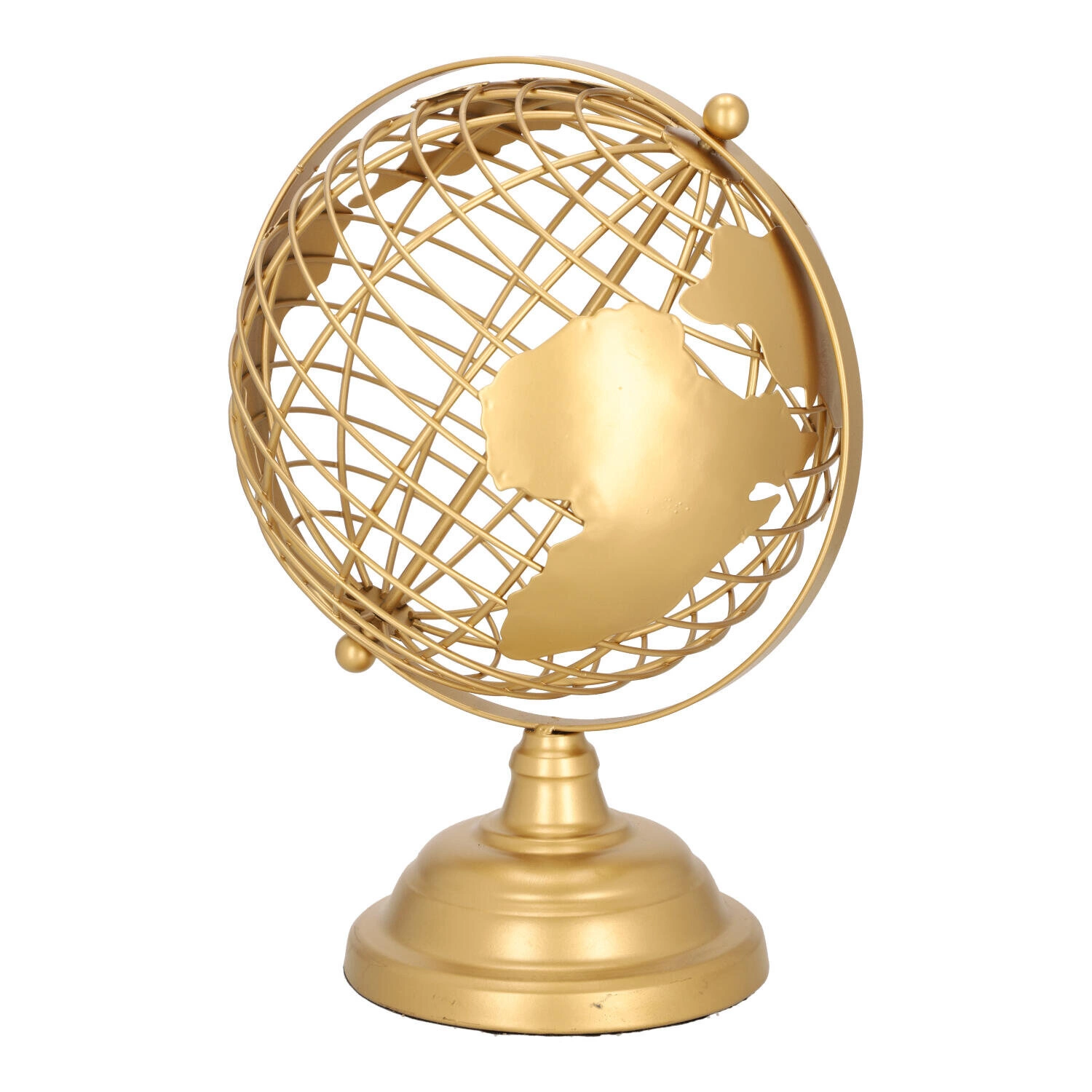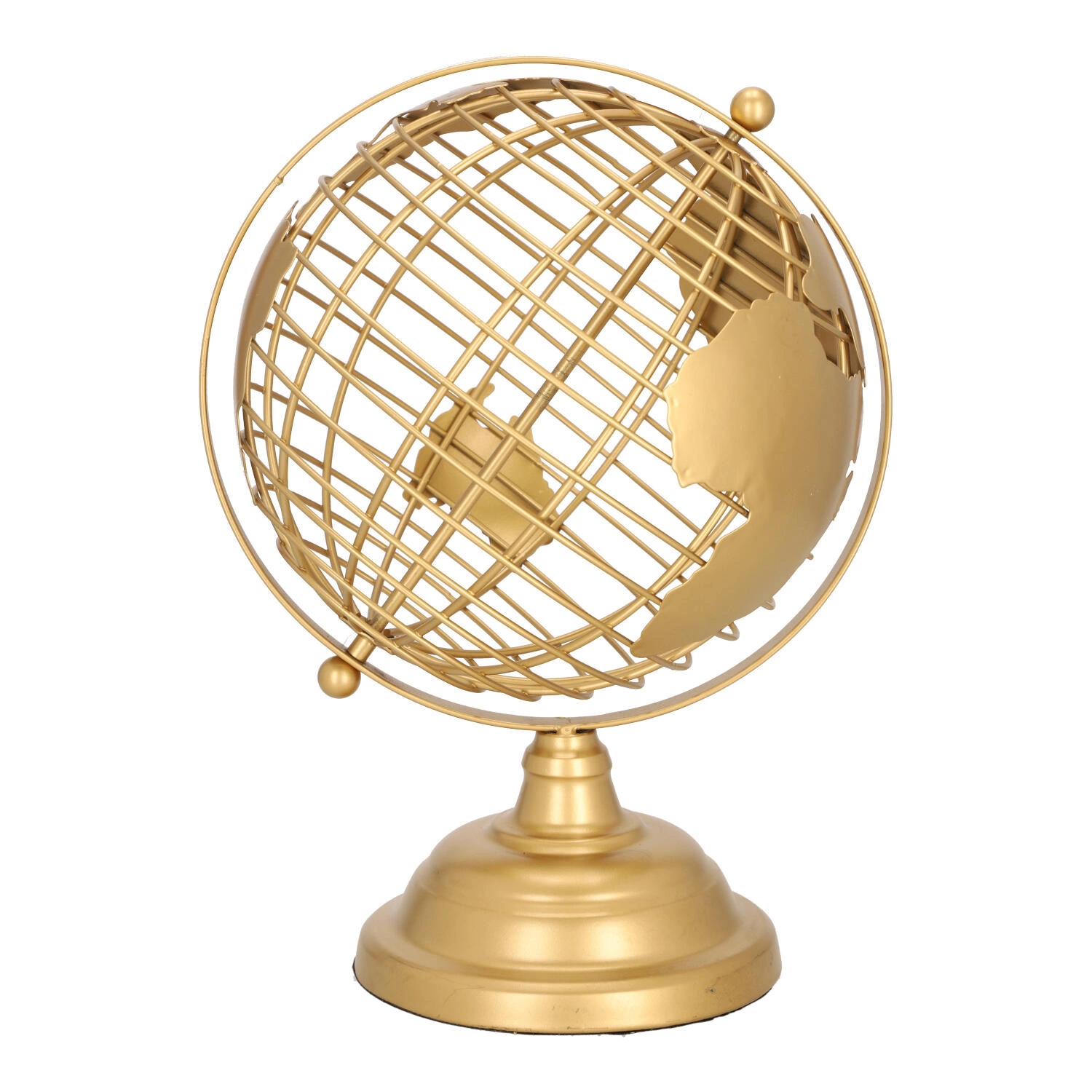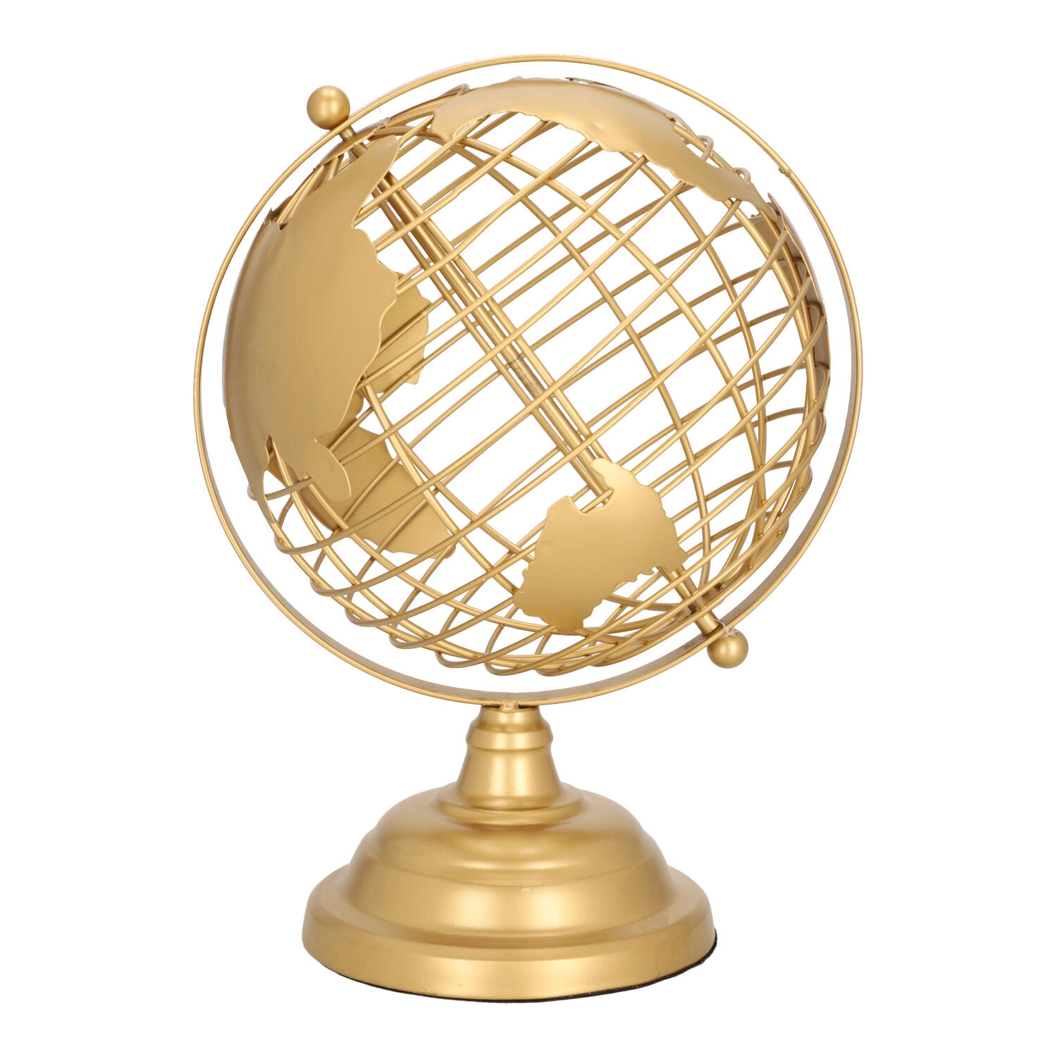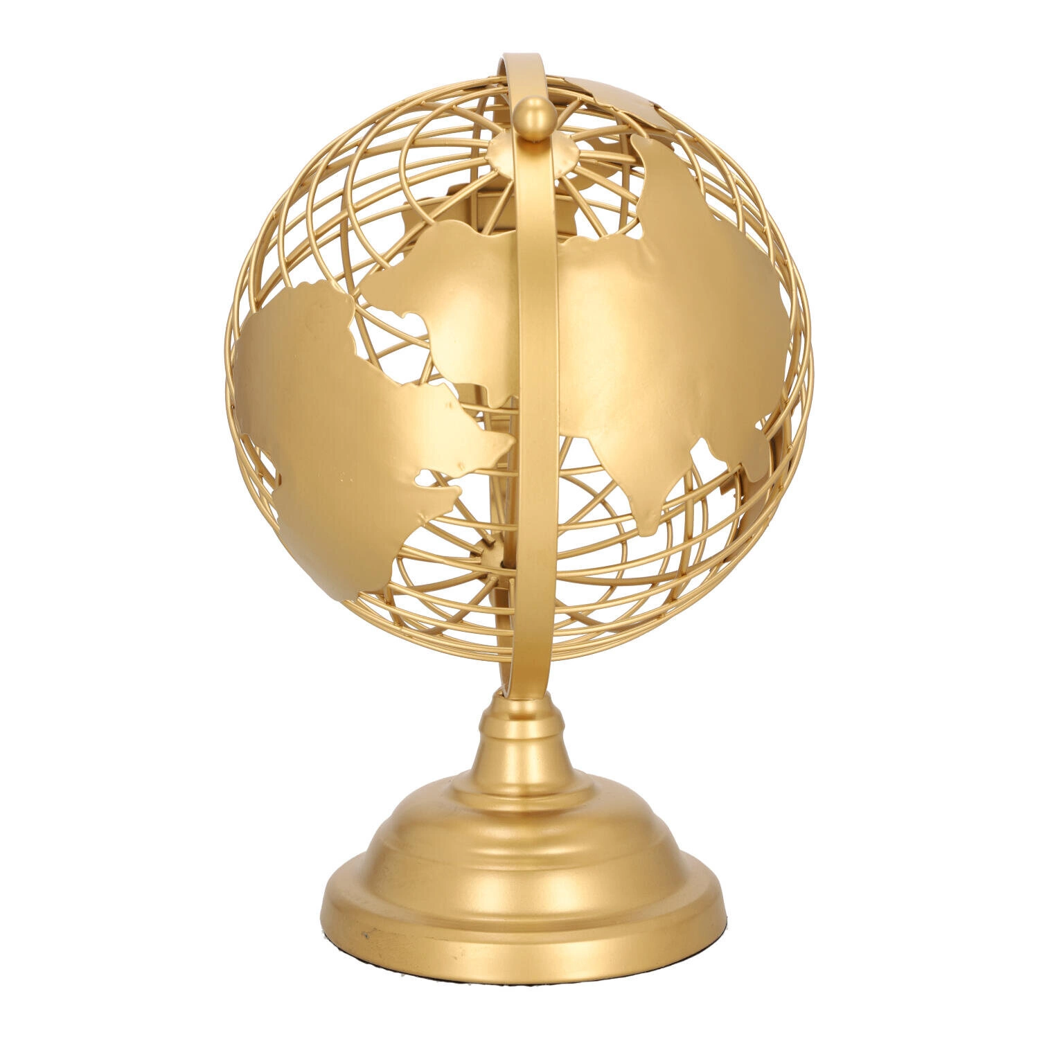 Globus dekoracyjny metalowy Intesi to stylowa propozycja dla miłośników eleganckich dodatków wnętrzarskich. Wykonany w całości z metalu w kolorze złotym, ma wysokość 28 cm i zachwyca ażurową, precyzyjną konstrukcją. Dzięki nowoczesnej formie oraz subtelnemu połyskowi, ten globus ozdobny doskonale wpisuje się w estetykę glamour, stanowiąc jednocześnie funkcjonalny i wyrazisty akcent w salonie lub biurze.