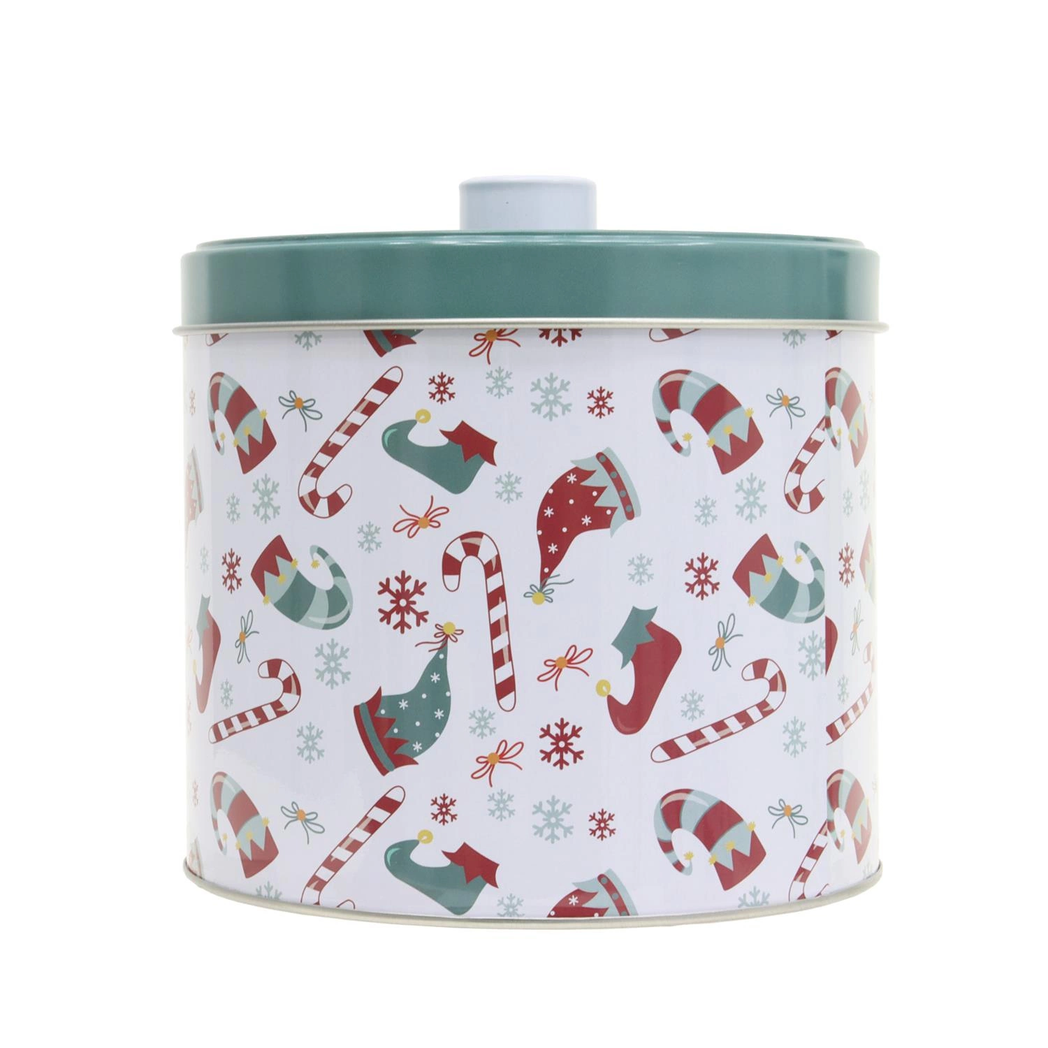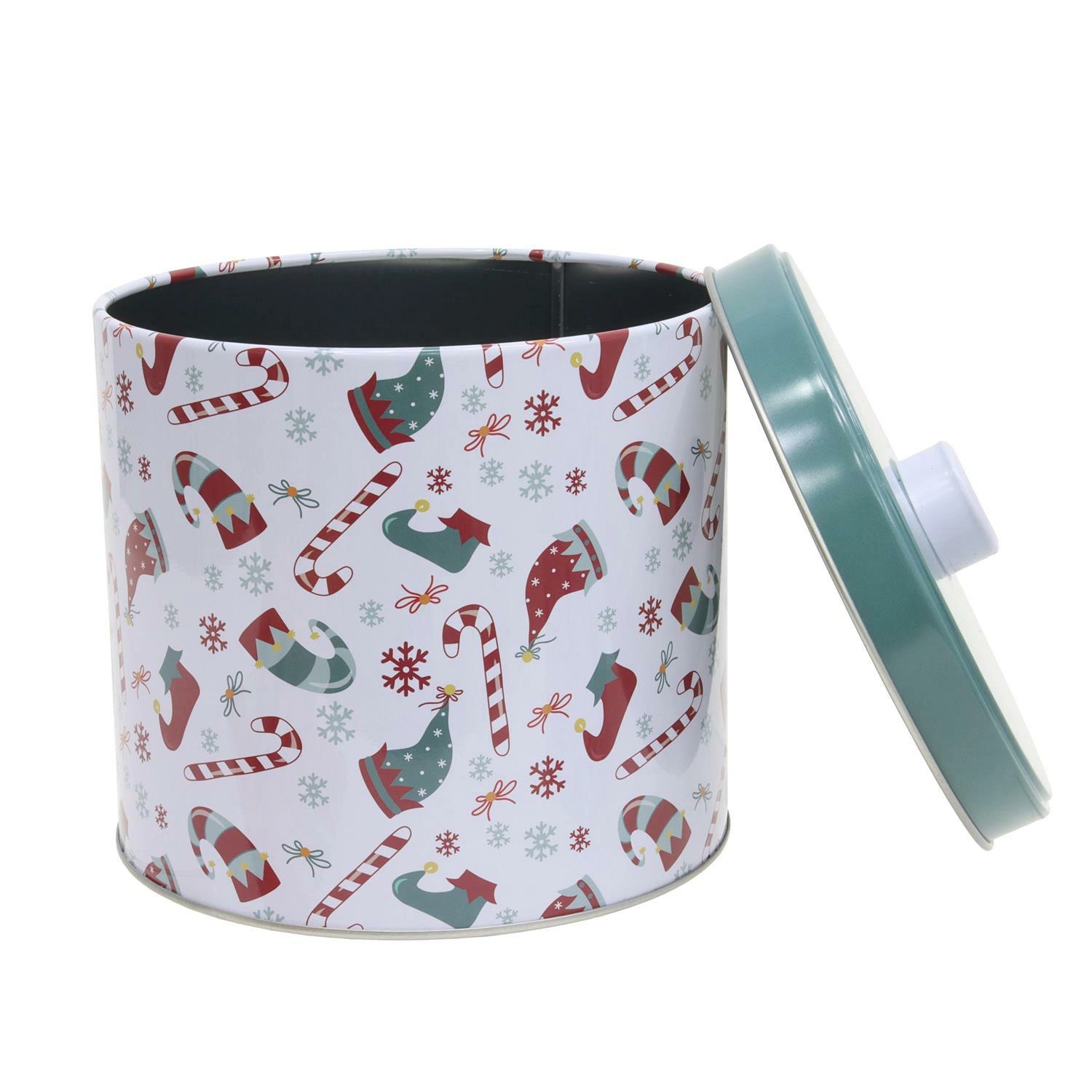 Zestaw 2 metalowych pudełek świątecznych Intesi to funkcjonalna i dekoracyjna ozdoba bożonarodzeniowa, która łączy klasyczny biało-zielony design z praktycznym zastosowaniem w kuchni, jadalni lub salonie. Pudełka wykonane są z trwałego metalu, mają okrągły kształt i różne rozmiary – większe o wysokości 19,2 cm i średnicy 17,5 cm oraz mniejsze o wysokości 14 cm i średnicy 15 cm. Idealnie sprawdzą się jako elegancka dekoracja świąteczna na stół lub parapet oraz pojemnik na domowe wypieki i słodkości.