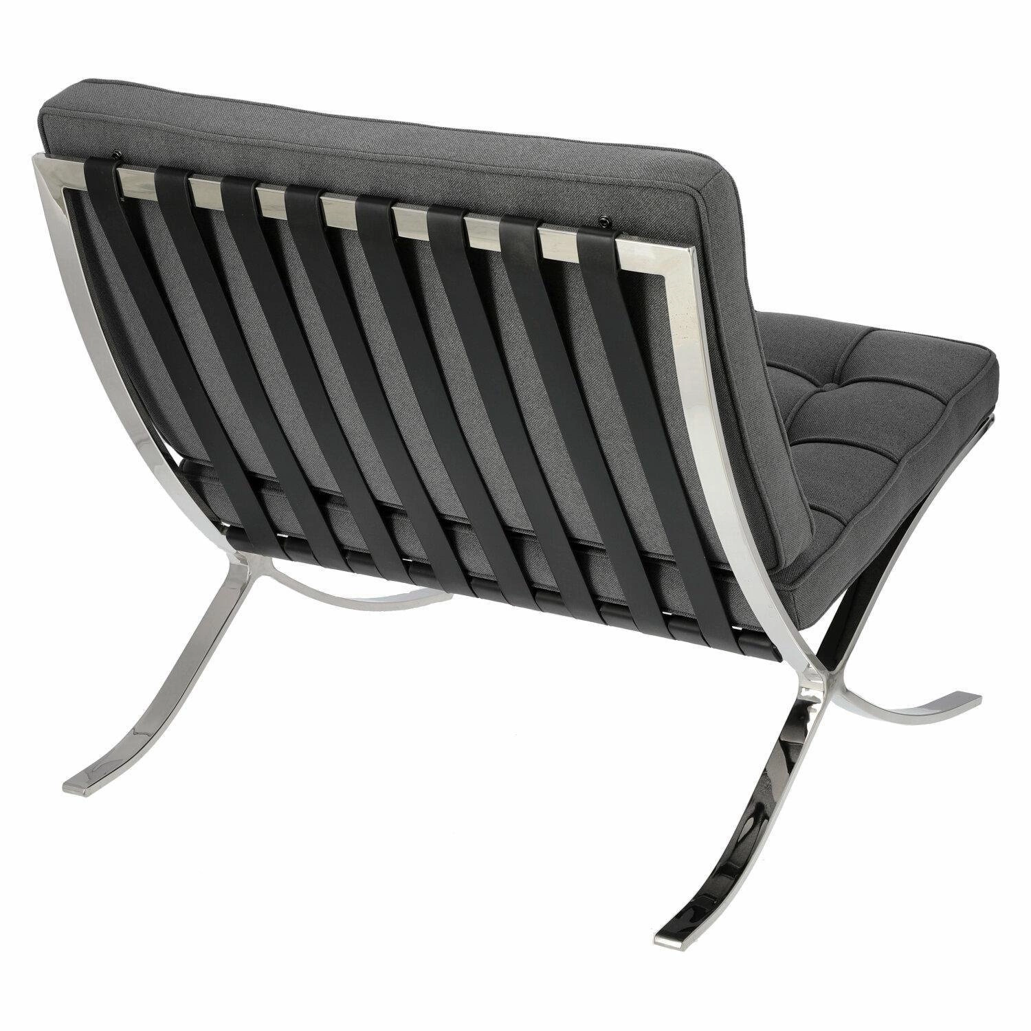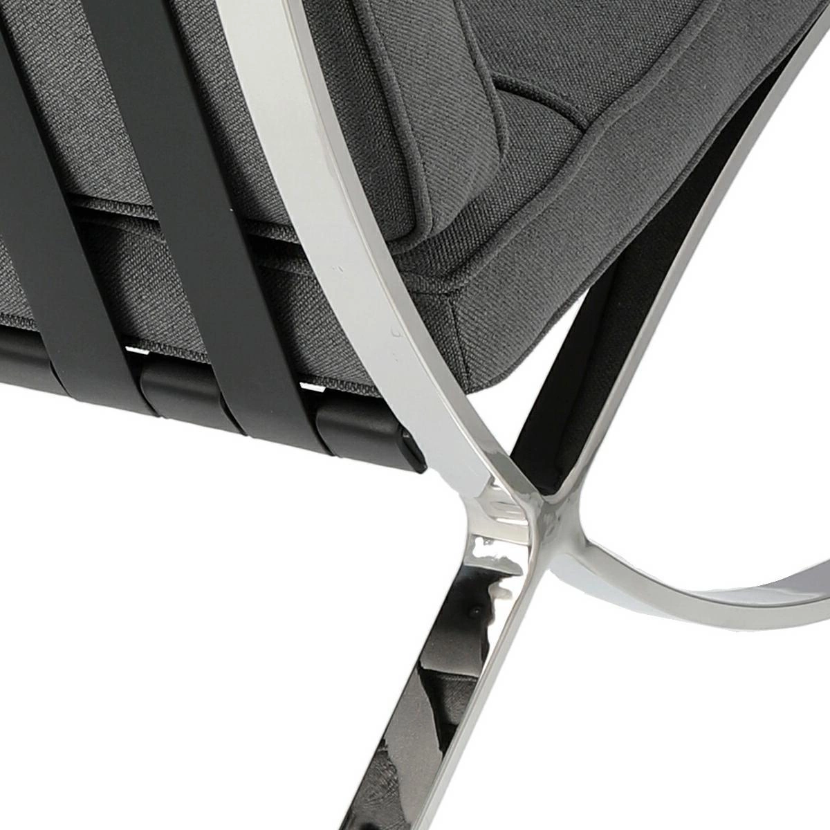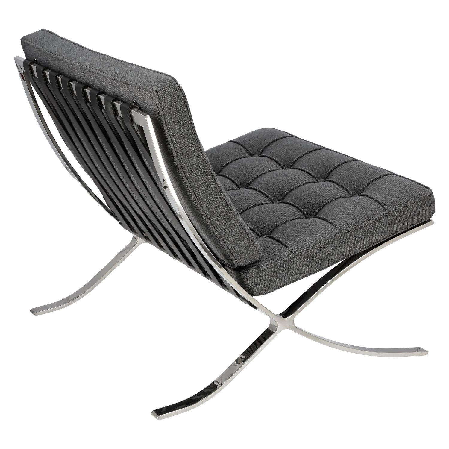 Fotel Barcelona stał się inspiracją do powstania modelu BA1 marki D2.Design, czyli jego wiernego odwzorowania. Powyginana w kształt litery "X" chromowana podstawa oraz pikowana w kwadraty tapicerka, to cechy charakterystyczne tego klasycznego projektu. Połączenie lekkiej podstawy z chromowanej stali z obszernym tapicerowanym siedziskiem pozwoliło stworzyć niezwykle wygodny fotel tapicerowany, który stał się synonimem luksusu i elegancji. Tkanina użyta do poduszek fotela jest bardzo łatwa w czyszczeniu, a zarazem trudno palna i spełnia normy ognioodporne.