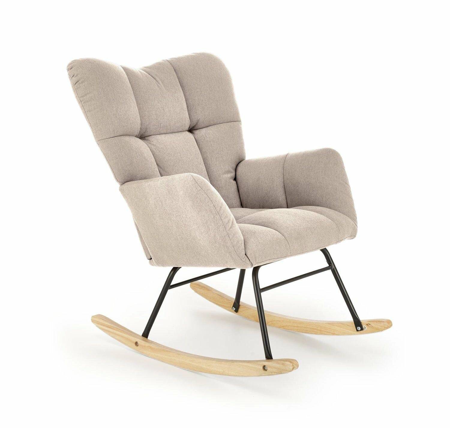 Fotel bujany Caipola w kolorze beżowym to idealne połączenie wygody i elegancji, które doskonale wpasuje się w każde wnętrze. Wykonany z wysokiej jakości tkaniny NEA, stali malowanej proszkowo oraz drewna litego, fotel oferuje zarówno wytrzymałość, jak i stylowy wygląd. Beżowa tkanina jest nie tylko estetyczna, ale także bardzo przyjemna w dotyku, zapewniając użytkownikowi maksymalny komfort. Fotel jest wyposażony w podłokietniki, które dodatkowo podnoszą wygodę użytkowania. Ozdobne pikowanie na całej powierzchni fotela dodaje mu charakteru i elegancji, czyniąc go wyjątkowym elementem każdego wnętrza. Bieguny w naturalnym kolorze drewna nadają fotelowi klasyczny wygląd, który doskonale komponuje się z różnorodnymi stylami aranżacji, w tym skandynawskim.