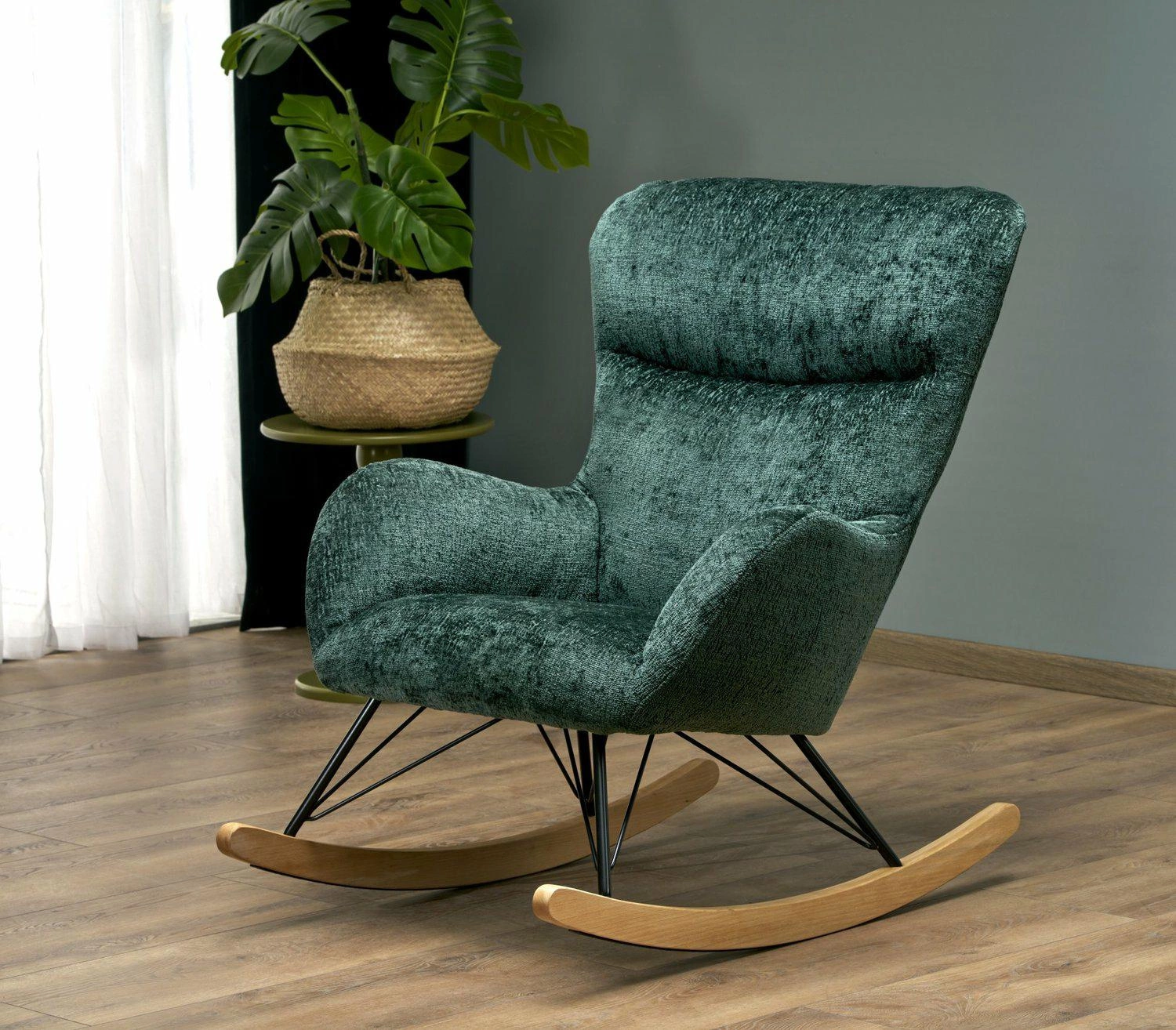 Fotel bujany Opera w kolorze zielonym to nie tylko funkcjonalny mebel, ale również designerski dodatek do wnętrza, który zapewni niezapomniany relaks. Wykonany z wysokiej jakości materiałów, takich jak tkanina, stal malowana proszkowo oraz drewno lite, fotel ten posiada nie tylko estetyczny wygląd, ale również solidną konstrukcję. Funkcja bujania sprawia, że jest to idealne miejsce do wypoczynku, ważną rolę odgrywają także podłokietniki zapewniające lepszy komfort użytkowania.