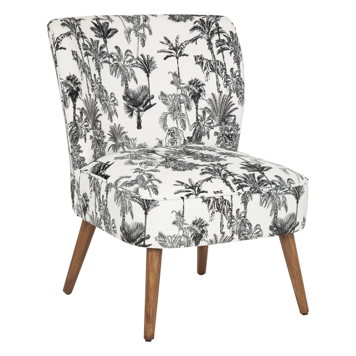 Ten wyjątkowy fotel marki Atmosphera to połączenie komfortu i stylu. Jego wyjątkowość podkreśla wzór z motywem palm, który dodaje wnętrzu niepowtarzalnego charakteru. Wysokie, zaokrąglone oparcie i wygodne siedzisko gwarantują komfort użytkowania, a nogi z drewna kauczukowego zapewniają stabilność i wytrzymałość.