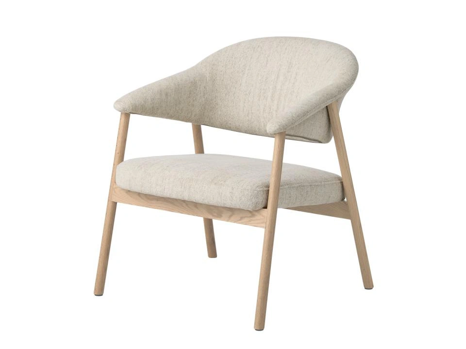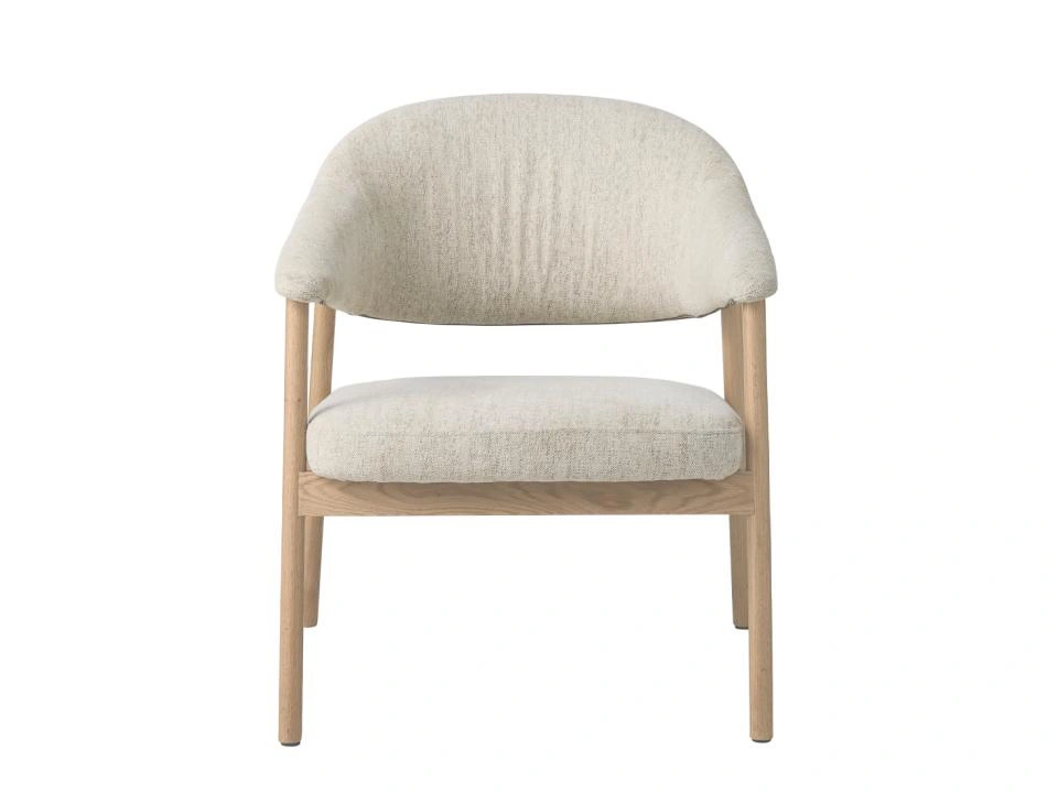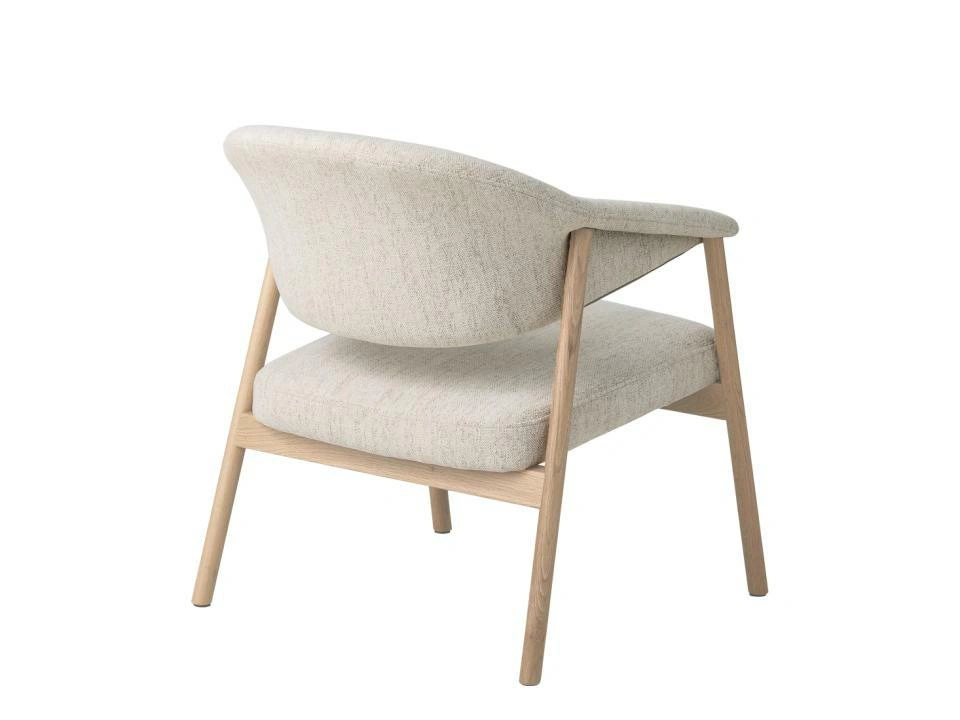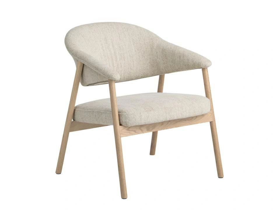 Fotel do salonu Elk Harmony 110 marki UNIQUE Furniture A/S to skandynawski fotel wypoczynkowy w kolorze piaskowym, wykonany z dębu bielonego i miękkiej tkaniny na siedzisku i oparciu. Kompaktowe wymiary (szerokość 68,5 cm, głębokość 71 cm, wysokość 76 cm) sprawiają, że fotel świetnie sprawdzi się zarówno w salonie, jak i w jadalni czy domowym gabinecie.