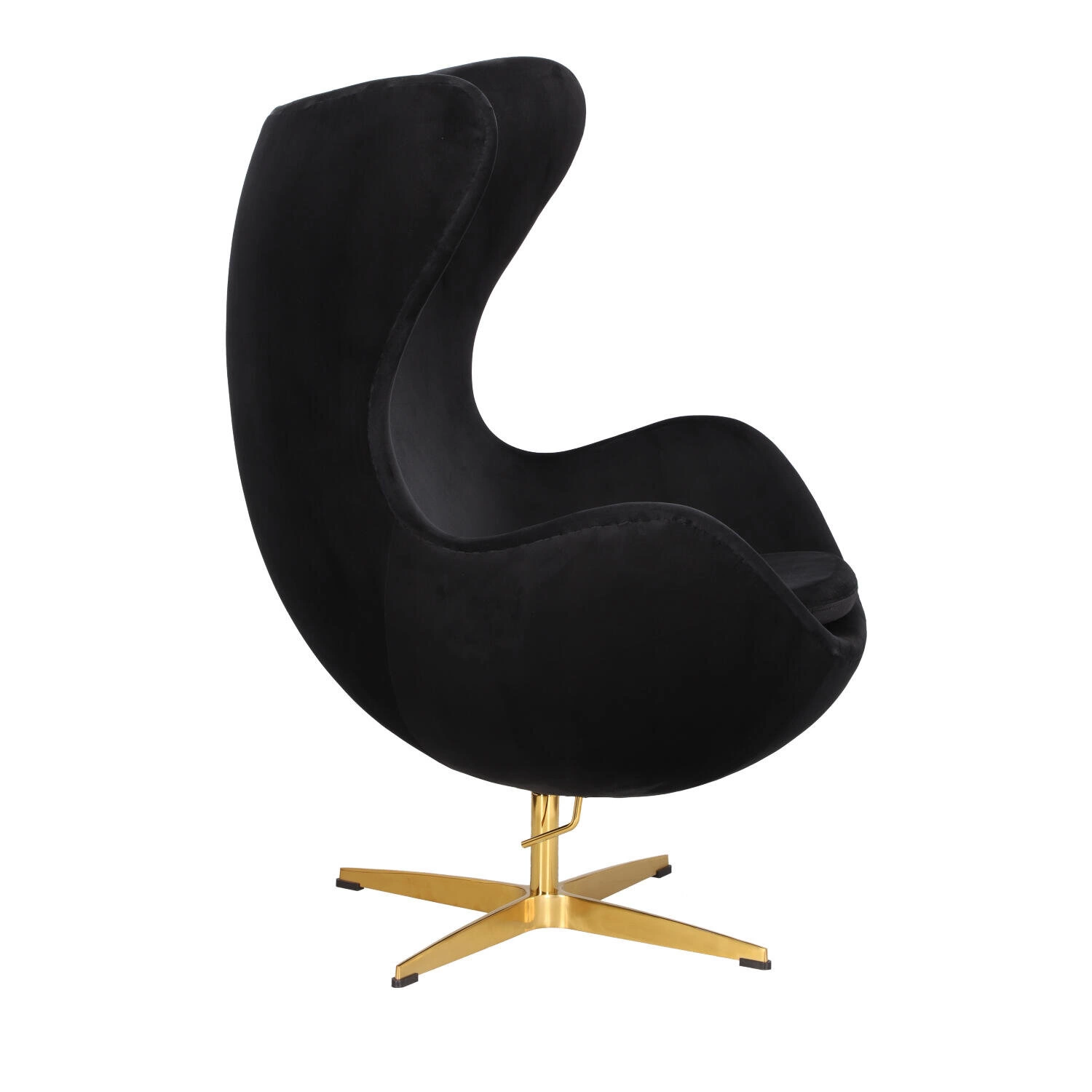 Jego charakterystyczny, nowatorski kształt sprawia, że fotel Jajo doskonale odnajdzie się w aranżacjach eklektycznych, glamour, pop-art czy modernistycznych. Niezależnie od tego, czy zostanie umieszczony w salonie, biurze czy hotelowym lobby, fotel Jajo przyciągnie wzrok i wprowadzi wyjątkową atmosferę. Elegancki, welwetowy materiał, z którego został wykonany, dodaje wnętrzu przytulności i stylu. Czarna tkanina w połączeniu ze złotą podstawą to kwintesencja elegancji i nowoczesności, która doskonale współgra z każdym wystrojem.