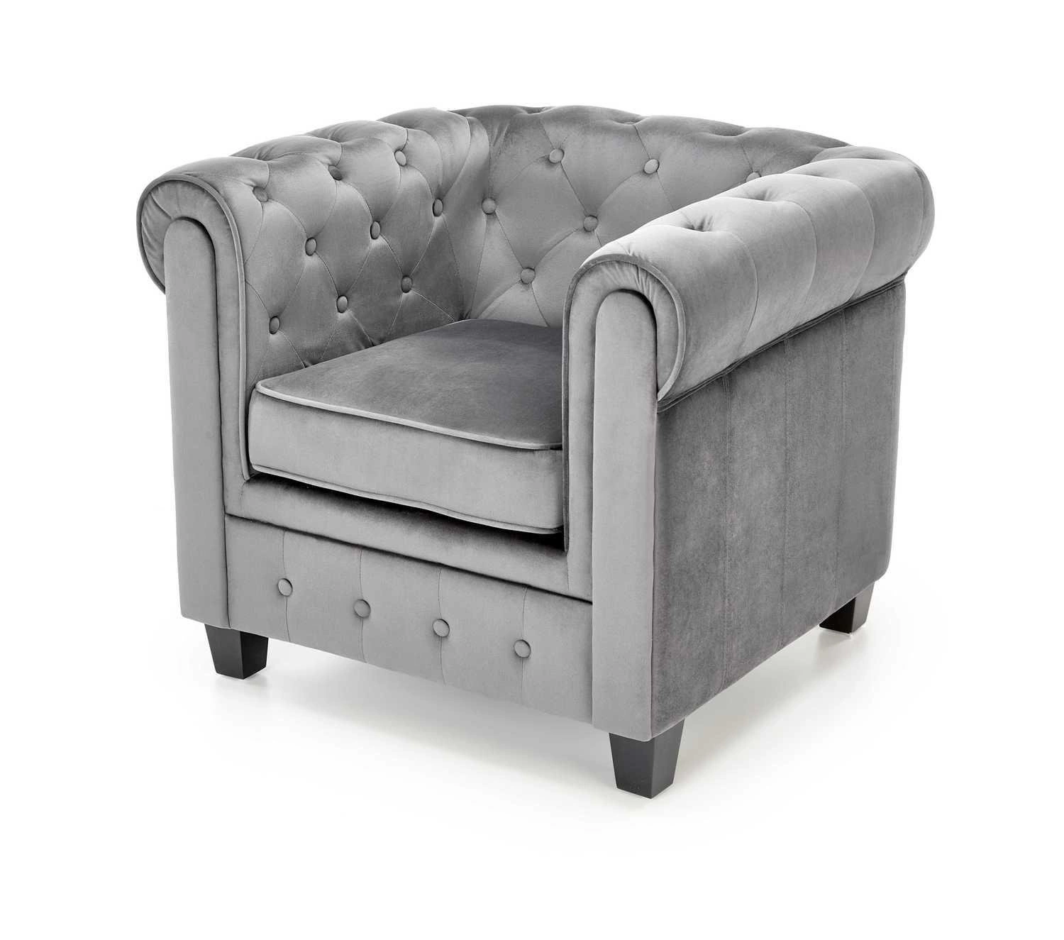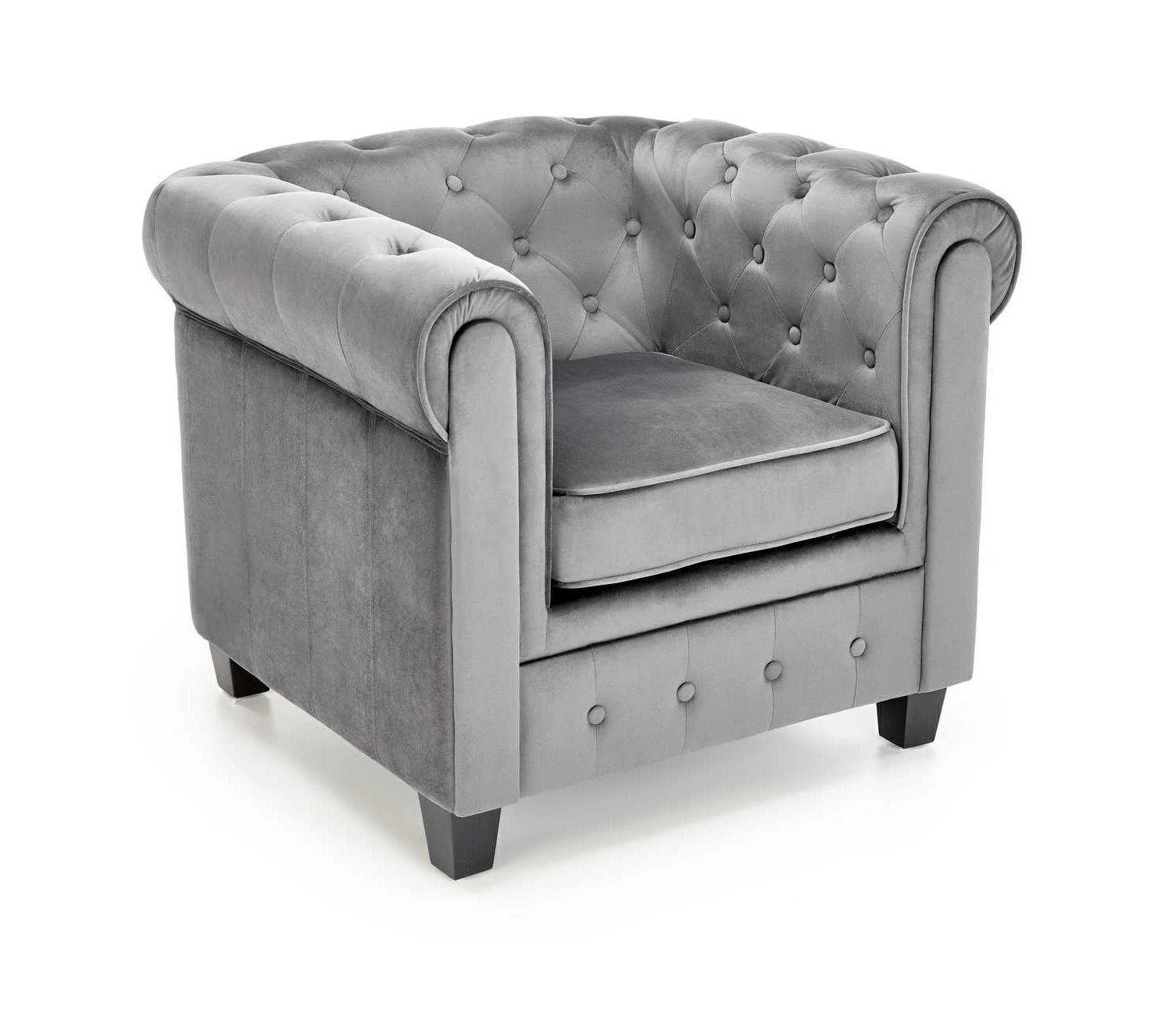 Fotel kubełkowy Dassion marki Intesi to połączenie nowoczesnego designu i stylu glamour w szarym, welwetowym wydaniu. Tapicerowany miękką tkaniną welwetową, wyposażony w szerokie podłokietniki i ergonomiczne oparcie, gwarantuje komfort na najwyższym poziomie. Stabilna konstrukcja na czterech czarnych, drewnianych nogach idealnie sprawdzi się w salonie, sypialni czy domowym gabinecie, tworząc przytulną strefę relaksu. Szerokość 62 cm, głębokość 75 cm i wysokość 73 cm sprawiają, że fotel doskonale dopasuje się do większości aranżacji bez zajmowania nadmiaru miejsca.