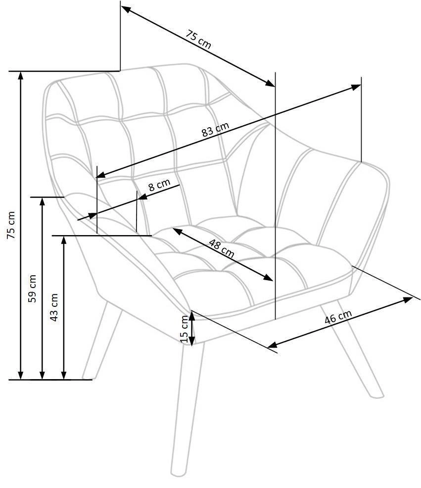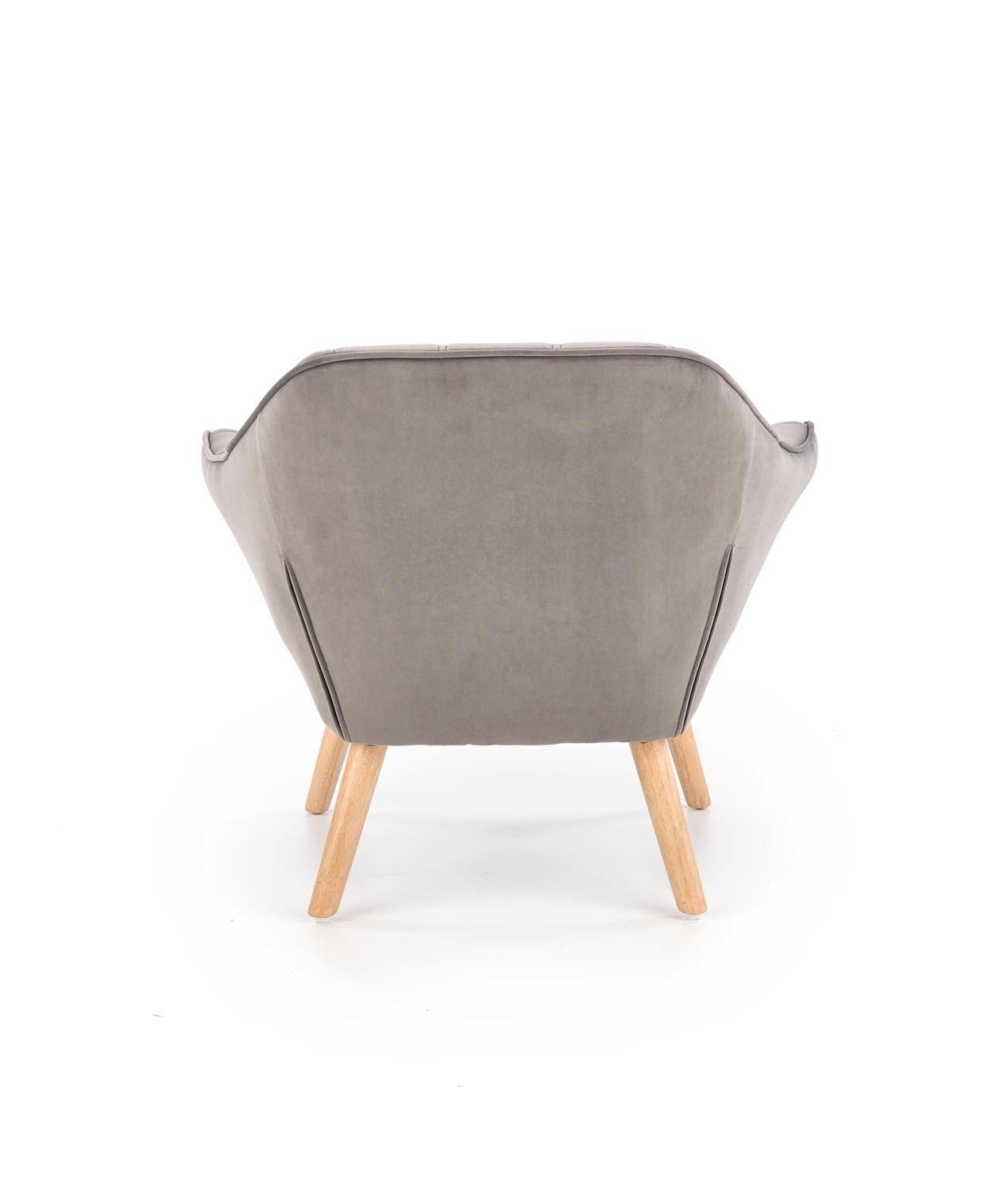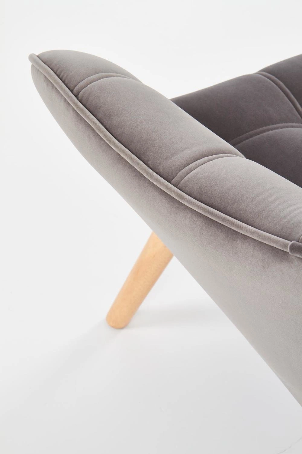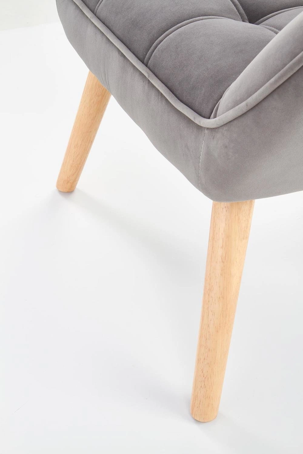 Fotel Kalmen przyciąga uwagę stonowanym, popielatym kolorem i starannym wykończeniem. Skandynawski styl wyraża się tu w prostocie linii, jasnych, naturalnych materiałach i funkcjonalności. Drewniane nogi w ciepłym, naturalnym odcieniu wprowadzają do wnętrza przyjemną atmosferę i są stabilną podstawą nawet przy maksymalnym obciążeniu do 120 kg. Velvetowa tapicerka nie tylko dobrze się prezentuje, ale też jest łatwa do utrzymania w czystości – wystarczy przetrzeć ją wilgotną ściereczką, by przywrócić jej świeżość.