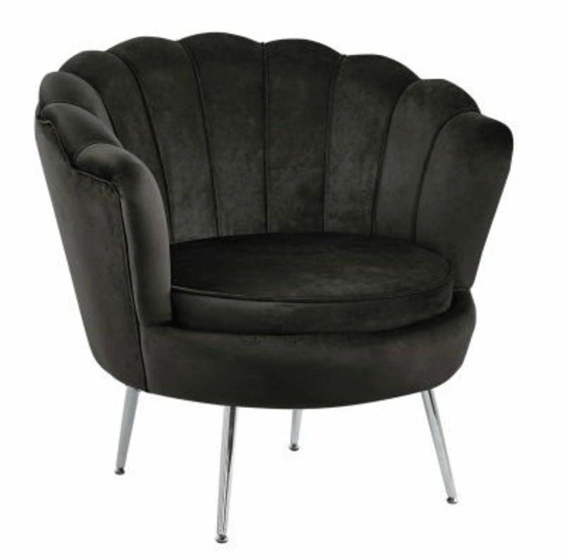 Fotel Korab VIC w kolorze czarnym ze srebrnymi nogami to połączenie elegancji, wygody i stylu glamour, które doskonale sprawdzi się w każdym nowoczesnym wnętrzu. Jego designerska forma, inspirowana kształtem muszli, nadaje mu wyjątkowy charakter, który będzie ozdobą zarówno salonu, jak i sypialni.