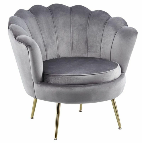 Fotel Korab VIC w kolorze szarym ze złotymi nogami to połączenie elegancji, wygody i stylu glamour, które doskonale sprawdzi się w każdym nowoczesnym wnętrzu. Jego designerska forma, inspirowana kształtem muszli, nadaje mu wyjątkowy charakter, który będzie ozdobą zarówno salonu, jak i sypialni.