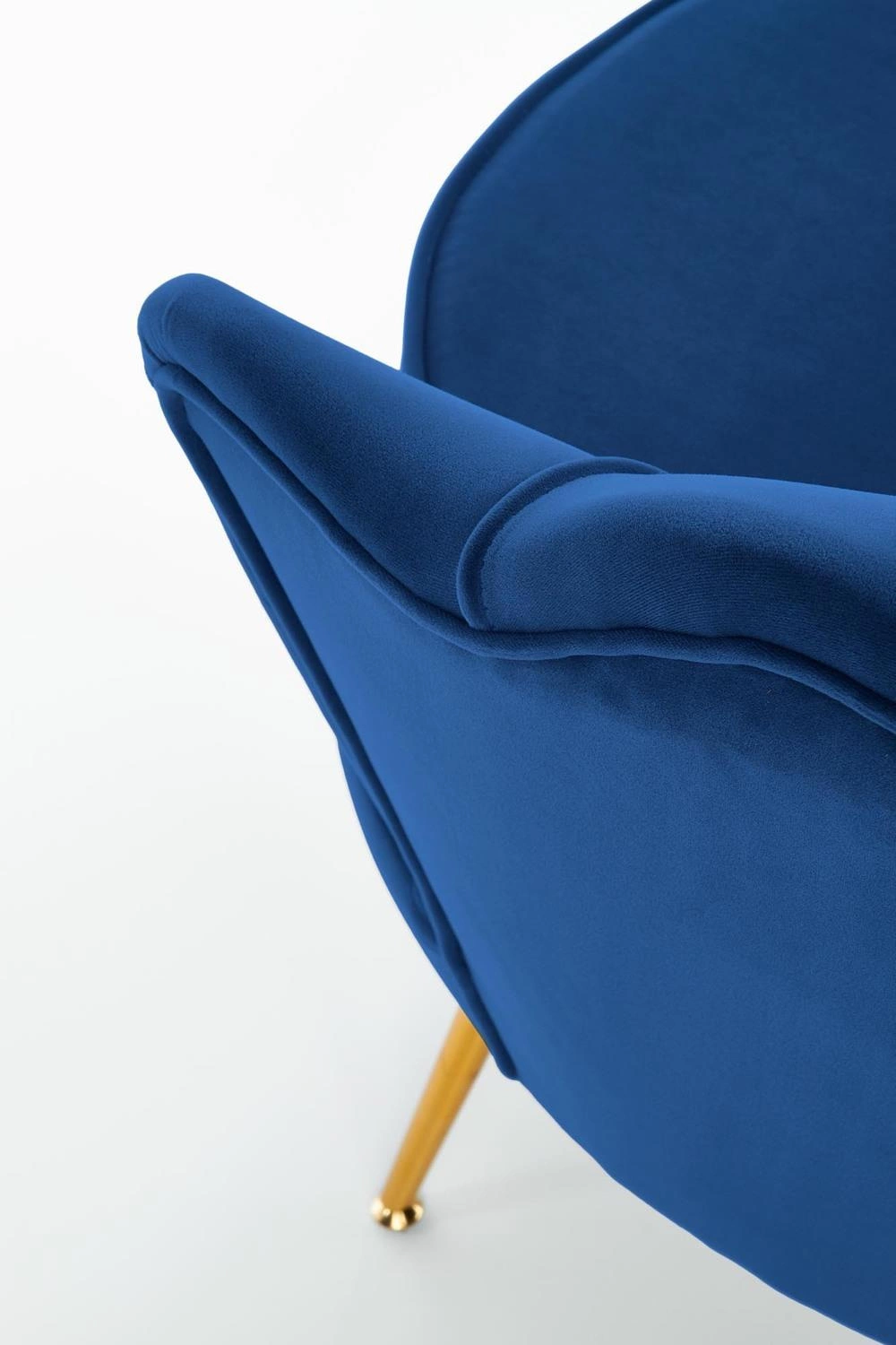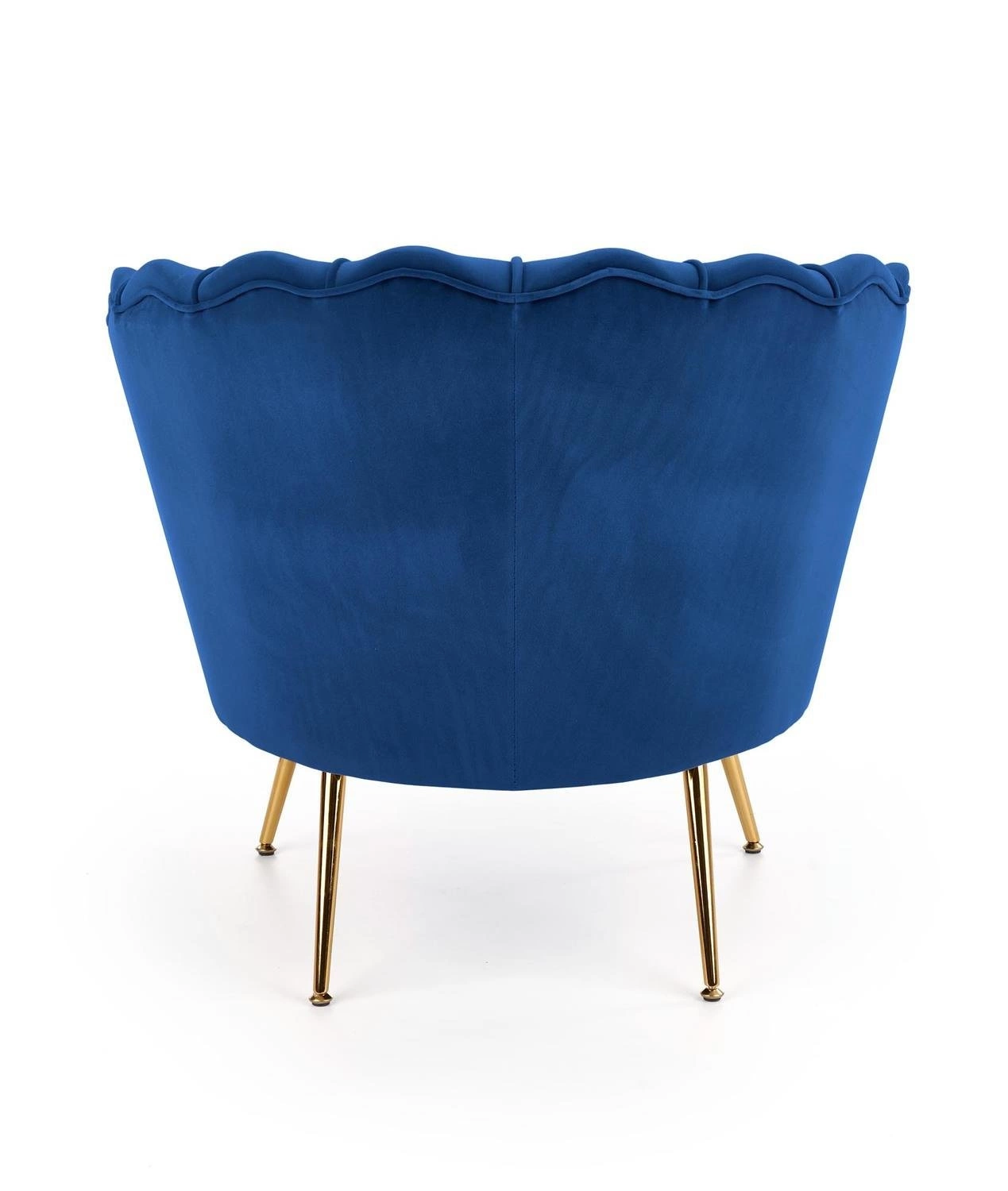Fotel muszelka Florencja marki Intesi to kwintesencja stylu glamour w nowoczesnym wydaniu. Ozdobna, welurowa tapicerka w głębokim odcieniu granatu oraz lśniąca, złota podstawa nadają mu wyjątkowego charakteru. Szerokie siedzisko (81 cm) i komfortowa wysokość (45 cm) sprawiają, że jest to doskonały fotel do salonu, sypialni lub eleganckiego kącika do czytania.