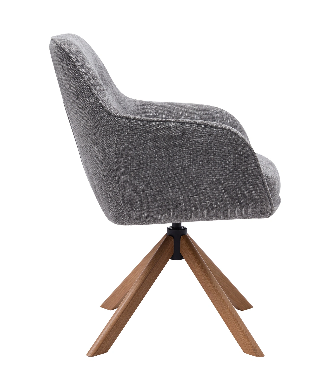 Fotel obrotowy Lova UNIQUE to propozycja dla osób poszukujących połączenia komfortu, nowoczesnego designu i funkcjonalności. Wykonany z drewna dębowego oraz wykończony aksamitną, szarą tkaniną, zapewnia przyjemne doznania dotykowe i estetykę w stylu loftowym. Wyposażony w wygodne podłokietniki i praktyczną funkcję obrotową, świetnie sprawdzi się jako fotel do salonu, gabinetu czy pokoju młodzieżowego.