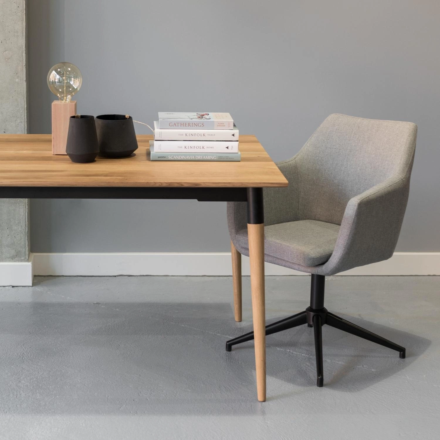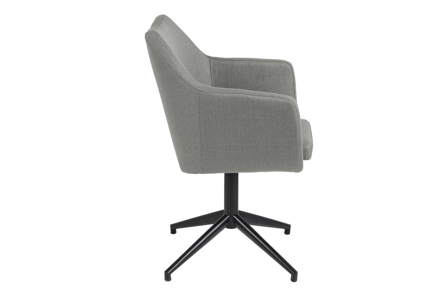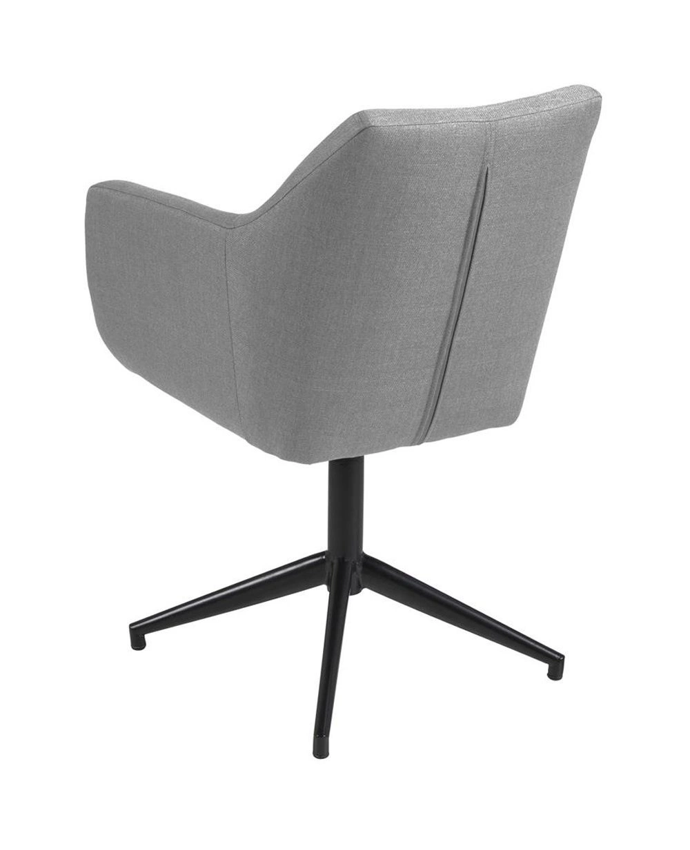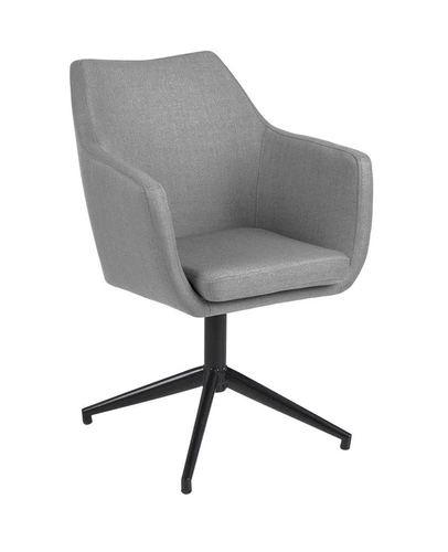 Fotel obrotowy Nora to fotel obrotowy z wbudowanym mechanizmem powracania. Siedzisko pokryte zostało materiałem o dużej gramaturze w kolorze jasnej szarości. Podstawa wykonana z malowanego proszkowo na czarno metalu jest bardzo wytrzymała. Poduszka siedziska jest zdejmowana wraz z pokrowcem co ułatwi utrzymanie krzesła w czystości.