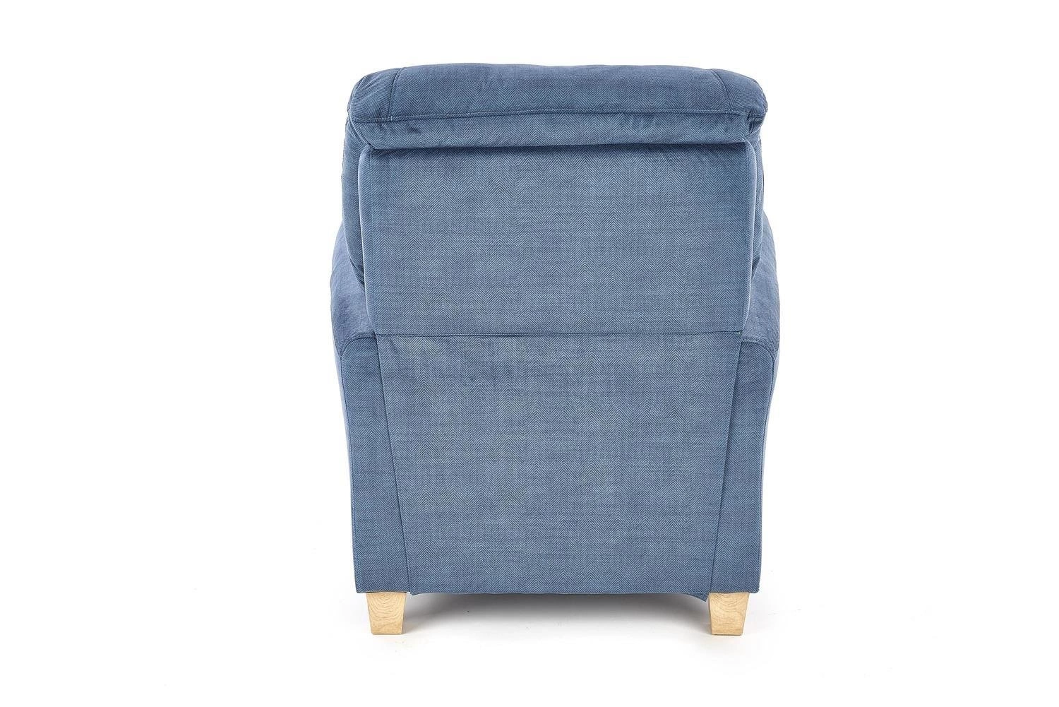 Fotel Darb idealnie łączy funkcjonalność z nowoczesnym designem. Siedzisko zostało wykonane z miękkiej, niebieskiej tkaniny, a podstawa z tworzywa sztucznego w kolorze drewna bukowego. Fotel doskonale uzupełni każdy nowoczesny dom, zarówno jako dodatek do salonu, jak i sypialni. Dzięki temu fotel może być używany w wielu różnych miejscach i scenariuszach.