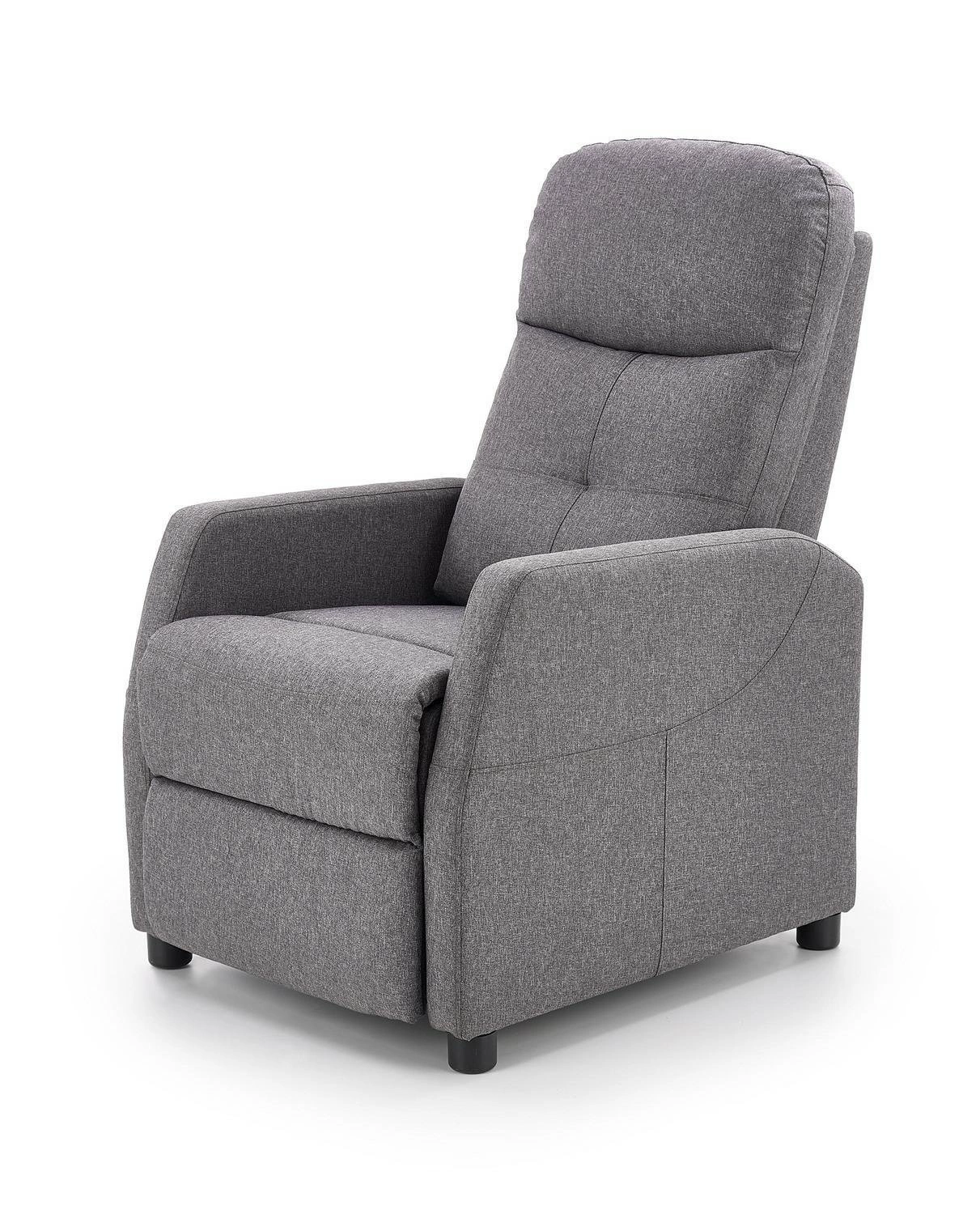 Rozkładany fotel tapicerowany Dativo szary - Designerski Styl | Intesi Uzyskaj klasyczny wygląd z nowoczesnymi funkcjami. Fotel rozkładany Dativo od Intesi łączy tradycyjny design z wytrzymałą tapicerką z tkaniny i funkcją rozkładania dla wygody. Fotel rozkładany Dativo zapewnia idealne miejsce do relaksu w całkowitym komforcie! Elegancki fotel ma tradycyjny styl, wykonany z praktycznej tapicerki z tkaniny oraz polipropylenowej ramy i nóżek wykończonych w kontrastowej czerni. Fotel posiada dwie regulowane pozycje, dzięki czemu można się w nim wygodnie rozsiąść, a nawet uciąć popołudniową drzemkę! Jego wymiary pozwalają na łatwe dopasowanie do każdego domu. Dodatkowo, poręczny mebel posiada również funkcję spania, więc z pewnością docenisz powrót do domu po długim dniu pracy i rozłożenie nóg na tym wspaniałym fotelu! Doskonały komfort w połączeniu z niewymuszonym designem sprawiają, że jest to najlepszy wybór do każdej przestrzeni życiowej - ustaw go w swoim domu i ciesz się jego wieloma zaletami już dziś! O tym warto pamiętać! Ciesz się luksusem i wygodą dzięki rozkładanemu fotelowi z wytrzymałej tkaniny Możliwość regulacji oparcia i podnóżka w dwóch pozycjach Szybkie i łatwe składanie fotela w celu wygodnego przechowywania Sztywniejsza konstrukcja i większa nośność dzięki ramie z polipropylenu (PP)