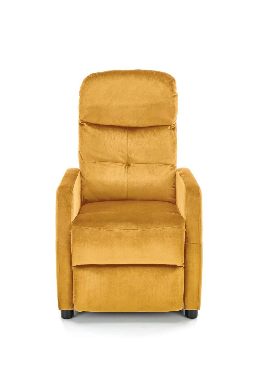 Rozkładany fotel tapicerowany Dativo żółty - Designerski Styl | Intesi Uzyskaj klasyczny wygląd z nowoczesnymi funkcjami. Fotel rozkładany Dativo od Intesi łączy tradycyjny design z aksamitną tapicerką z tkaniny i funkcją rozkładania dla wygody. Fotel rozkładany Dativo zapewnia idealne miejsce do relaksu w całkowitym komforcie! Elegancki fotel ma tradycyjny styl, wykonany z aksamitnej tapicerki z tkaniny oraz polipropylenowej ramy i nóżek wykończonych w kontrastowej czerni. Fotel posiada dwie regulowane pozycje, dzięki czemu można się w nim wygodnie rozsiąść, a nawet uciąć popołudniową drzemkę! Jego wymiary pozwalają na łatwe dopasowanie do każdego domu. Dodatkowo, poręczny mebel posiada również funkcję spania, więc z pewnością docenisz powrót do domu po długim dniu pracy i rozłożenie nóg na tym wspaniałym fotelu! Doskonały komfort w połączeniu z niewymuszonym designem sprawiają, że jest to najlepszy wybór do każdej przestrzeni życiowej - ustaw go w swoim domu i ciesz się jego wieloma zaletami już dziś! O tym warto pamiętać! Ciesz się luksusem i wygodą dzięki rozkładanemu fotelowi z aksamitnej tkaniny Możliwość regulacji oparcia i podnóżka w dwóch pozycjach Szybkie i łatwe składanie fotela w celu wygodnego przechowywania Sztywniejsza konstrukcja i większa nośność dzięki ramie z polipropylenu (PP)