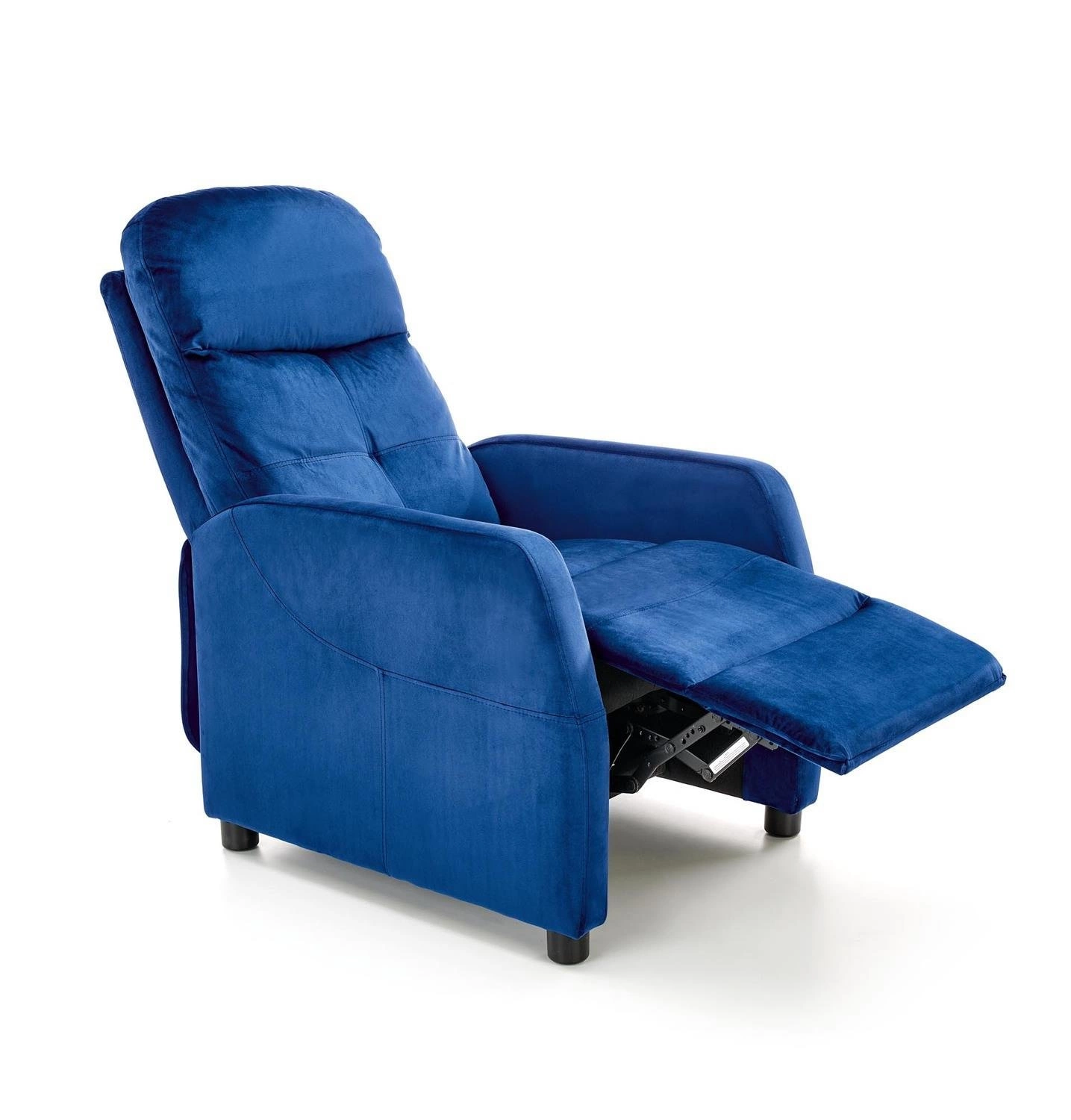 Rozkładany fotel tapicerowany Dativo granatowy - Designerski Styl | Intesi Uzyskaj klasyczny wygląd z nowoczesnymi funkcjami. Fotel rozkładany Dativo od Intesi łączy tradycyjny design z aksamitną tapicerką z tkaniny i funkcją rozkładania dla wygody. Fotel rozkładany Dativo zapewnia idealne miejsce do relaksu w całkowitym komforcie! Elegancki fotel ma tradycyjny styl, wykonany z aksamitnej tapicerki z tkaniny oraz polipropylenowej ramy i nóżek wykończonych w kontrastowej czerni. Fotel posiada dwie regulowane pozycje, dzięki czemu można się w nim wygodnie rozsiąść, a nawet uciąć popołudniową drzemkę! Jego wymiary pozwalają na łatwe dopasowanie do każdego domu. Dodatkowo, poręczny mebel posiada również funkcję spania, więc z pewnością docenisz powrót do domu po długim dniu pracy i rozłożenie nóg na tym wspaniałym fotelu! Doskonały komfort w połączeniu z niewymuszonym designem sprawiają, że jest to najlepszy wybór do każdej przestrzeni życiowej - ustaw go w swoim domu i ciesz się jego wieloma zaletami już dziś! O tym warto pamiętać! Ciesz się luksusem i wygodą dzięki rozkładanemu fotelowi z aksamitnej tkaniny Możliwość regulacji oparcia i podnóżka w dwóch pozycjach Szybkie i łatwe składanie fotela w celu wygodnego przechowywania Sztywniejsza konstrukcja i większa nośność dzięki ramie z polipropylenu (PP)