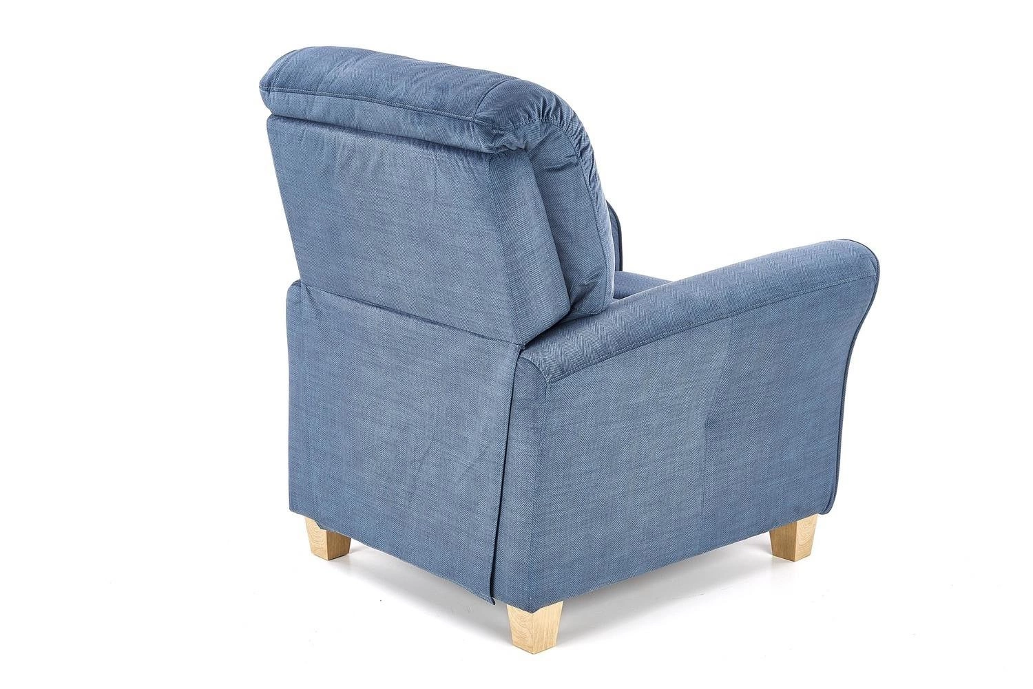 Fotel Darb idealnie łączy funkcjonalność z nowoczesnym designem. Siedzisko zostało wykonane z miękkiej, niebieskiej tkaniny, a podstawa z tworzywa sztucznego w kolorze drewna bukowego. Fotel doskonale uzupełni każdy nowoczesny dom, zarówno jako dodatek do salonu, jak i sypialni. Dzięki temu fotel może być używany w wielu różnych miejscach i scenariuszach.