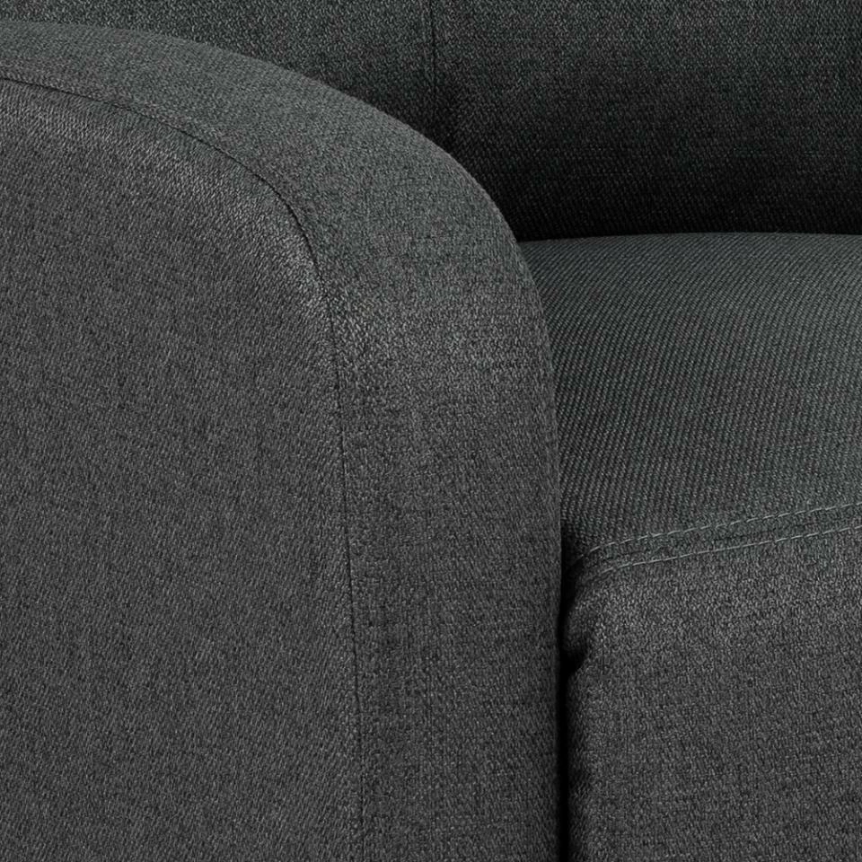 Fotel Siom to niezawodny towarzysz gotowy zaoferować przytulne doznania w każdej chwili, gdy potrzebujesz chwili relaksu lub przerwy. Jego klasyczne proporcje w połączeniu z antracytową tapicerką o płaskim splocie tworzą elegancki wygląd, który pasuje do różnych rodzajów wnętrz. Wytrzymała tkanina jest zarówno trwała, jak i przyjemna w dotyku, zapewniając nie tylko estetyczny wygląd, ale także komfort użytkowania.