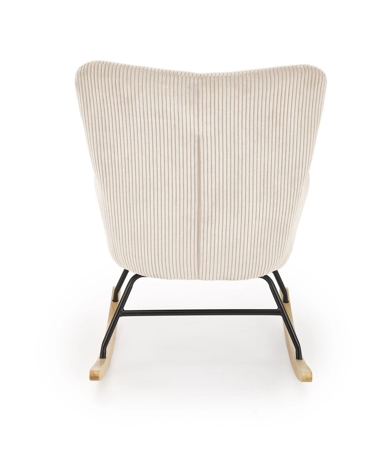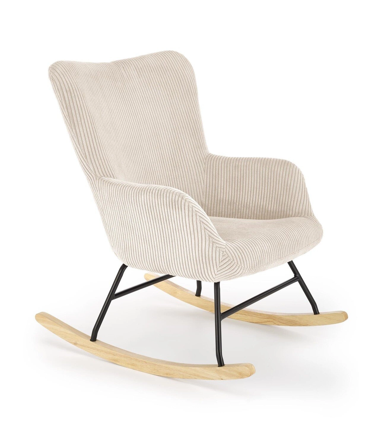- Fotel wypoczynkowy Donelia na biegunach to elegancki i wygodny mebel w kolorze kremowym