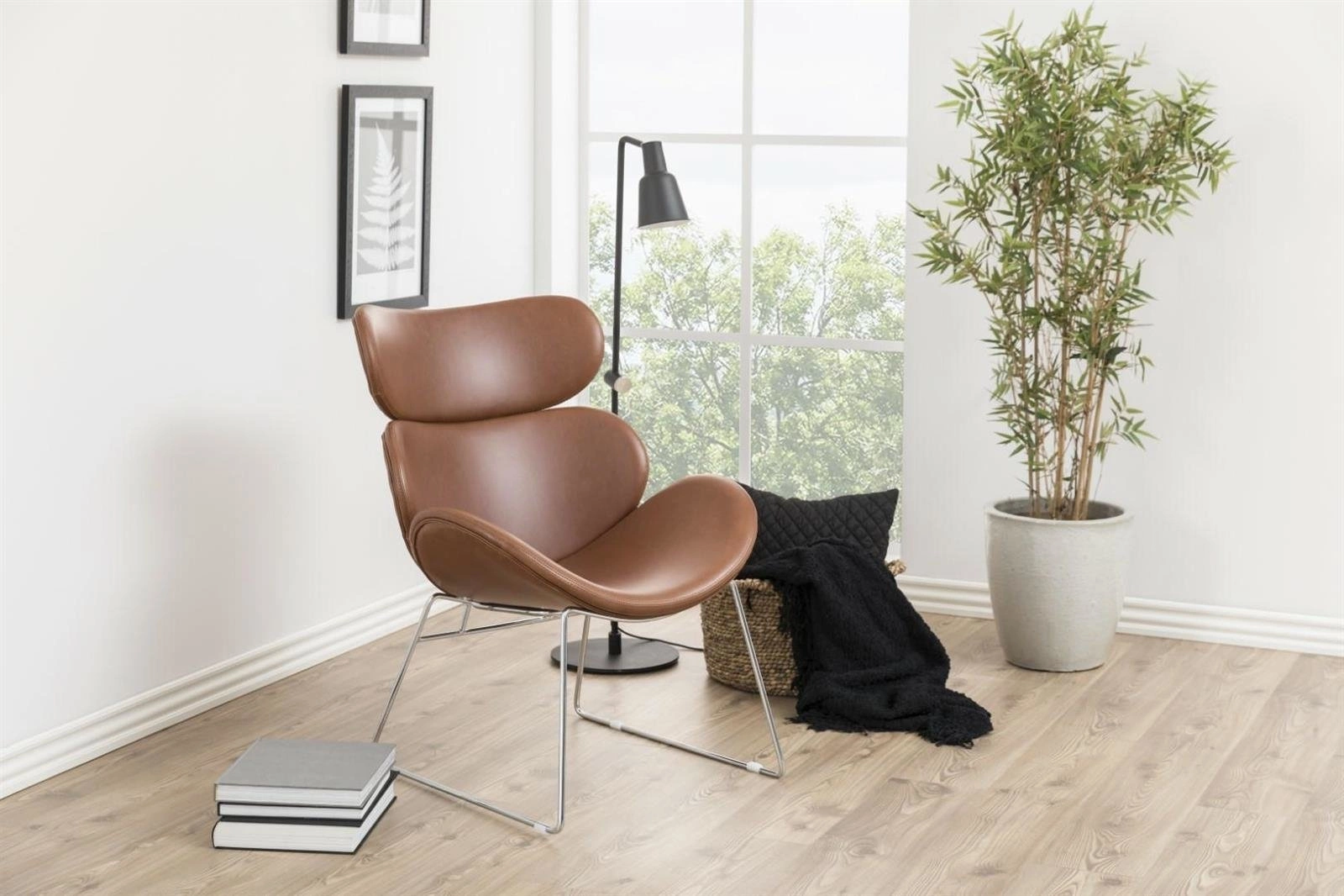 Modernistyczny styl wymieszany z minimalizmem daje niesamowity efekt we wnętrzu. Fotel Cazar to połączenie przemyślanej i oszczędnej w dekoracje formy z nowoczesnymi materiałami. Całość sprawia, że jest to idealny fotel nawet dla najbardziej wymagających. Wykonany został z brązowej skóry ekologicznej i chromowanej metalowej podstawy. Siedzisko fotela zapewnia komfortowy wypoczynek i składa się z trzech profilowanych elementów tapicerowanych eko-skórą, która dodatkowo jest lekko postarzona optycznie. Designerskie siedzisko podtrzymują subtelne nogi w kształcie płozy, a ich chromowane wykończenie dodaje całości klasycznego i eleganckiego wyglądu.