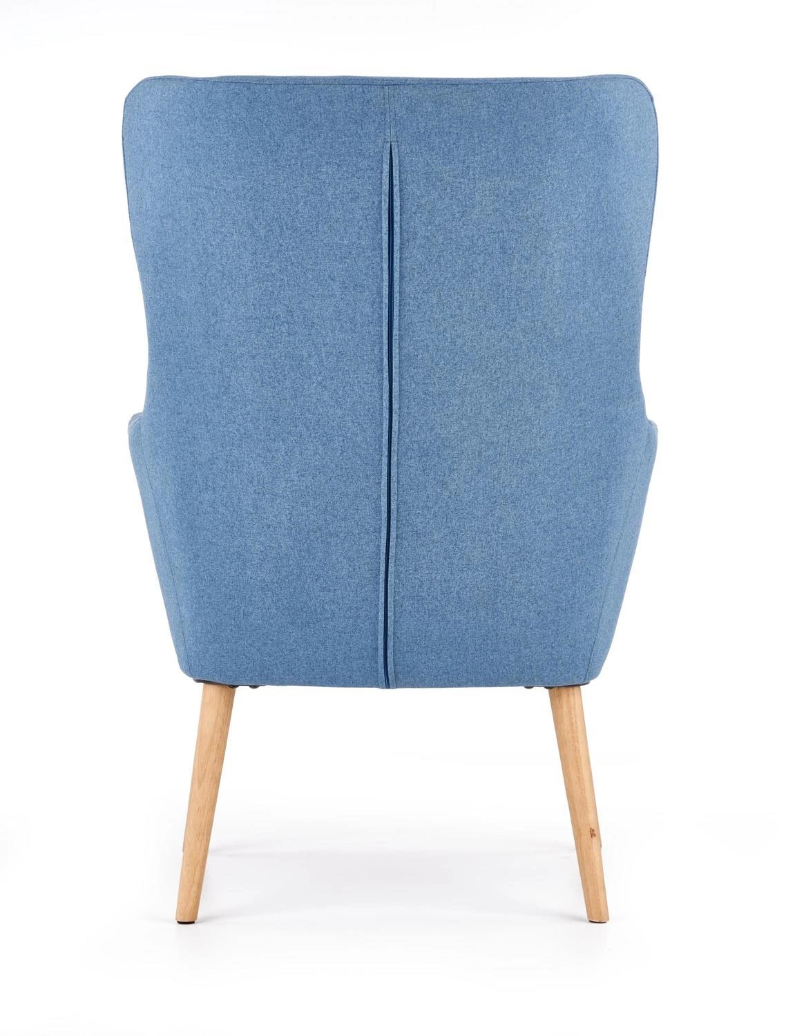Fotel uszak Damar niebieski do salonu skandynawski tapicerowany z drewnianymi nogami Intesi