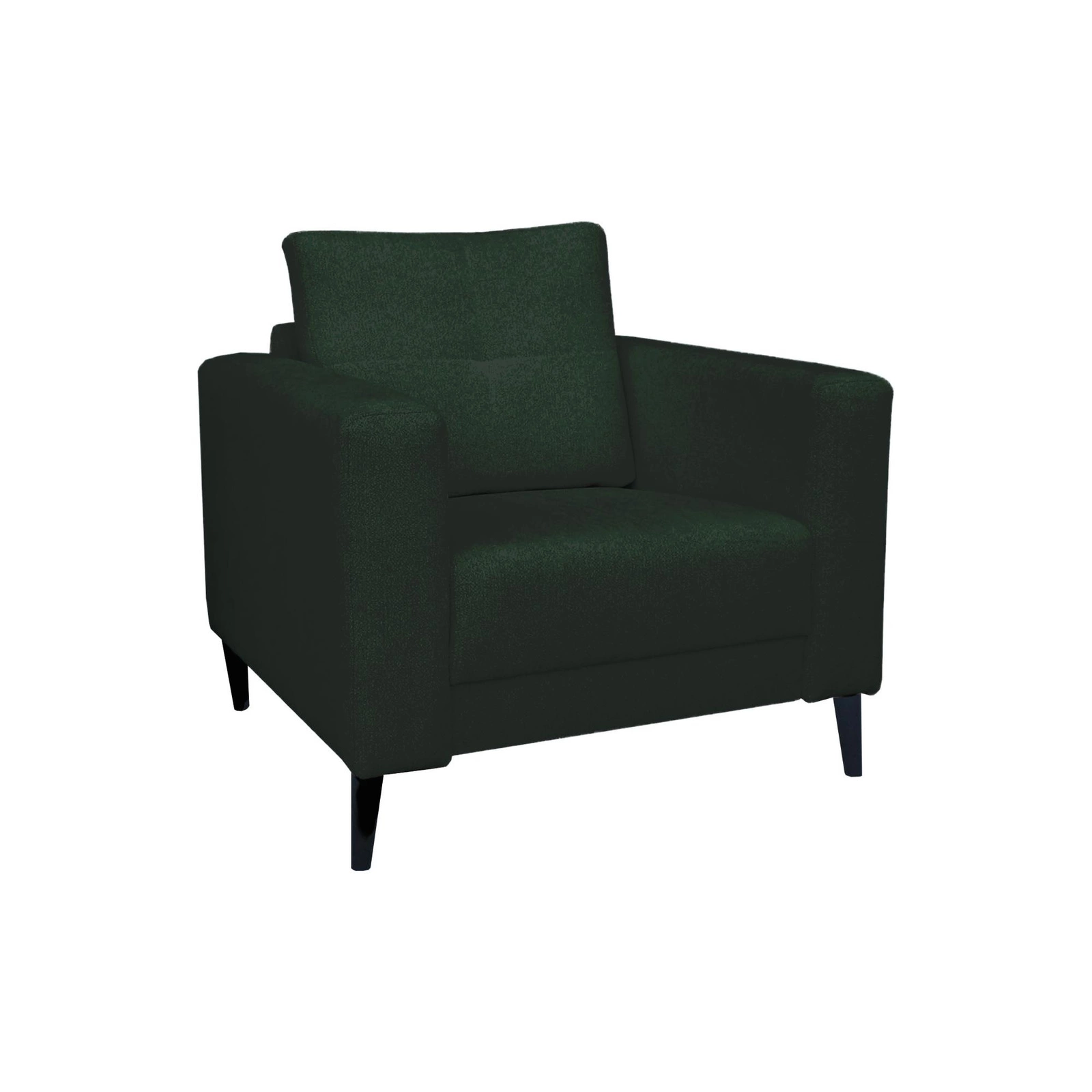 Fotel uszak Lara zielony marki Intesi to połączenie skandynawskiej prostoty z nowoczesną wygodą. Model wyróżnia się miękką tapicerką w odcieniu butelkowej zieleni, solidną konstrukcją na czarnych, drewnianych nogach oraz szerokim, wyprofilowanym oparciem z podłokietnikami. Siedzisko o wymiarach 91 × 86 cm i wysokości 88 cm wypełnione jest sprężyną falistą i pianką T30, co zapewnia wyjątkowy komfort codziennego wypoczynku.