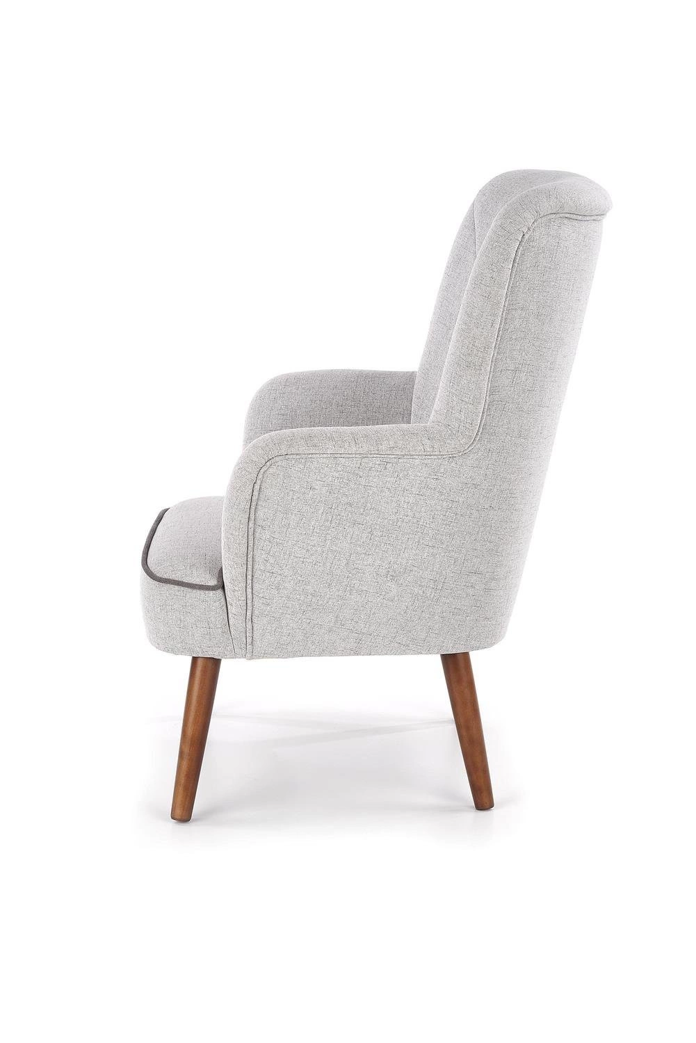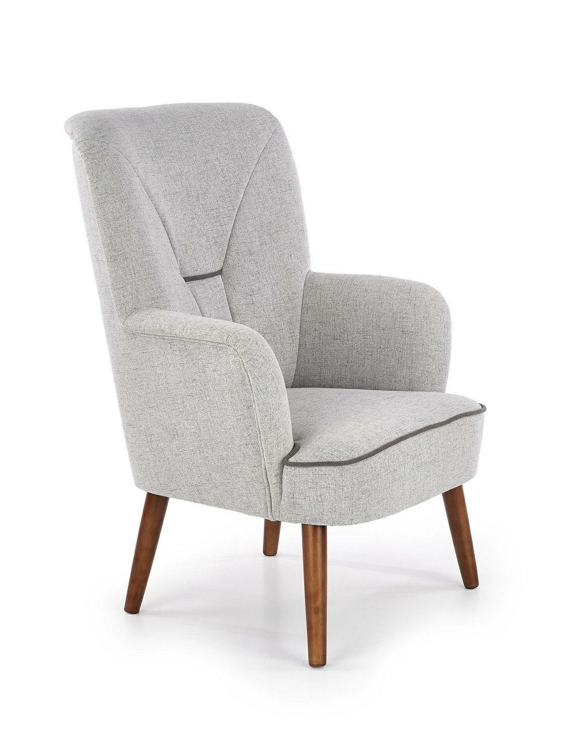 Zapraszamy na relaks z naszym fotelem! Elegancki i zachęcający fotel zapewnia najwyższy komfort i odpowiednie ułożenie ciała. Tapicerka nadaje miękki i przytulny wygląd. Wspaniałe nogi z naturalnego, lakierowanego drewna w kolorze orzechowym stanowią doskonałą równowagę dla wyściełanego siedziska fotela. Oparcie wyprofilowane dla maksymalnego komfortu sprawia, że możesz się zrelaksować w najlepszy możliwy sposób. Ten niezbędny mebel doskonale pasuje do niemal każdego wystroju - od nowoczesnego po skandynawski - dzięki czemu jest zarówno praktyczny, jak i stylowy, pasując do każdego domu.