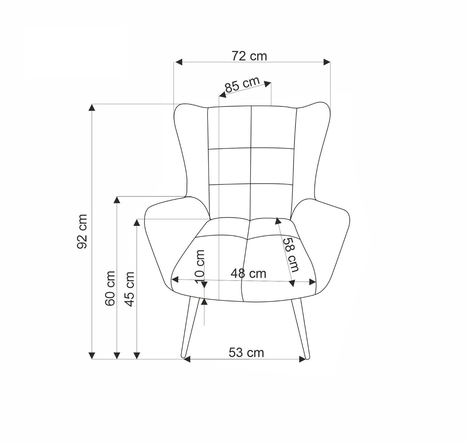 Wallace to fotel zaprojektowany z myślą o prawdziwym odprężeniu. Wysokie oparcie i szerokie siedzisko zapewniają doskonałe podparcie pleców, a podłokietniki umożliwiają wygodne ułożenie ramion podczas czytania lub oglądania telewizji. Miękka, przyjemna w dotyku tkanina zachęca do dłuższego wypoczynku, zapewniając komfort nawet podczas wielogodzinnego użytkowania. Wysokość siedziska (45 cm) została dobrana tak, by ułatwić wstawanie i siadanie, co docenią zarówno młodsi, jak i starsi domownicy.
