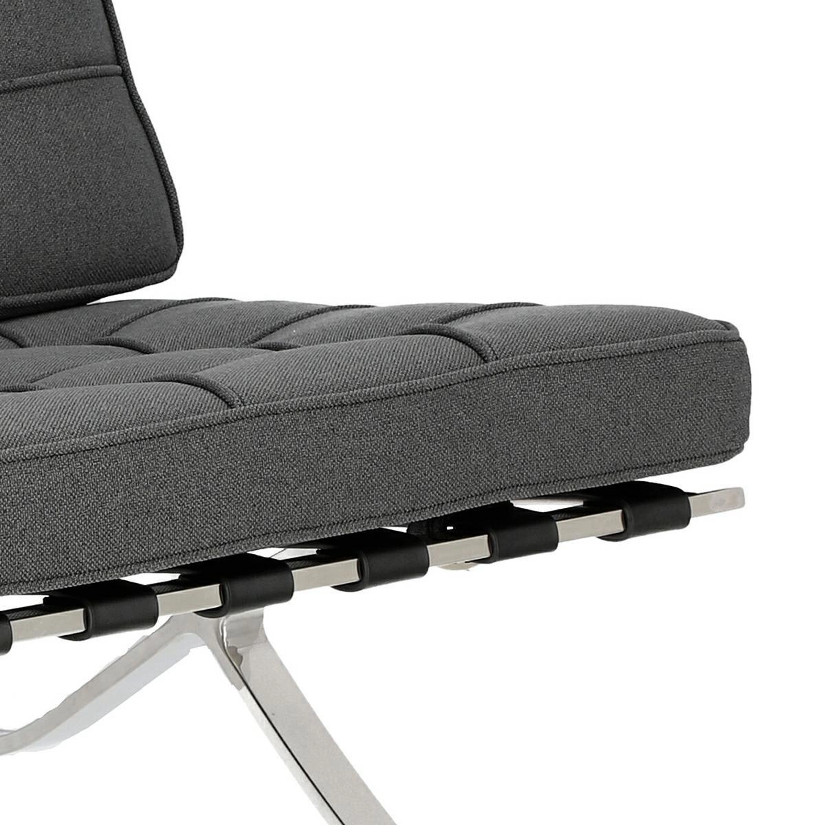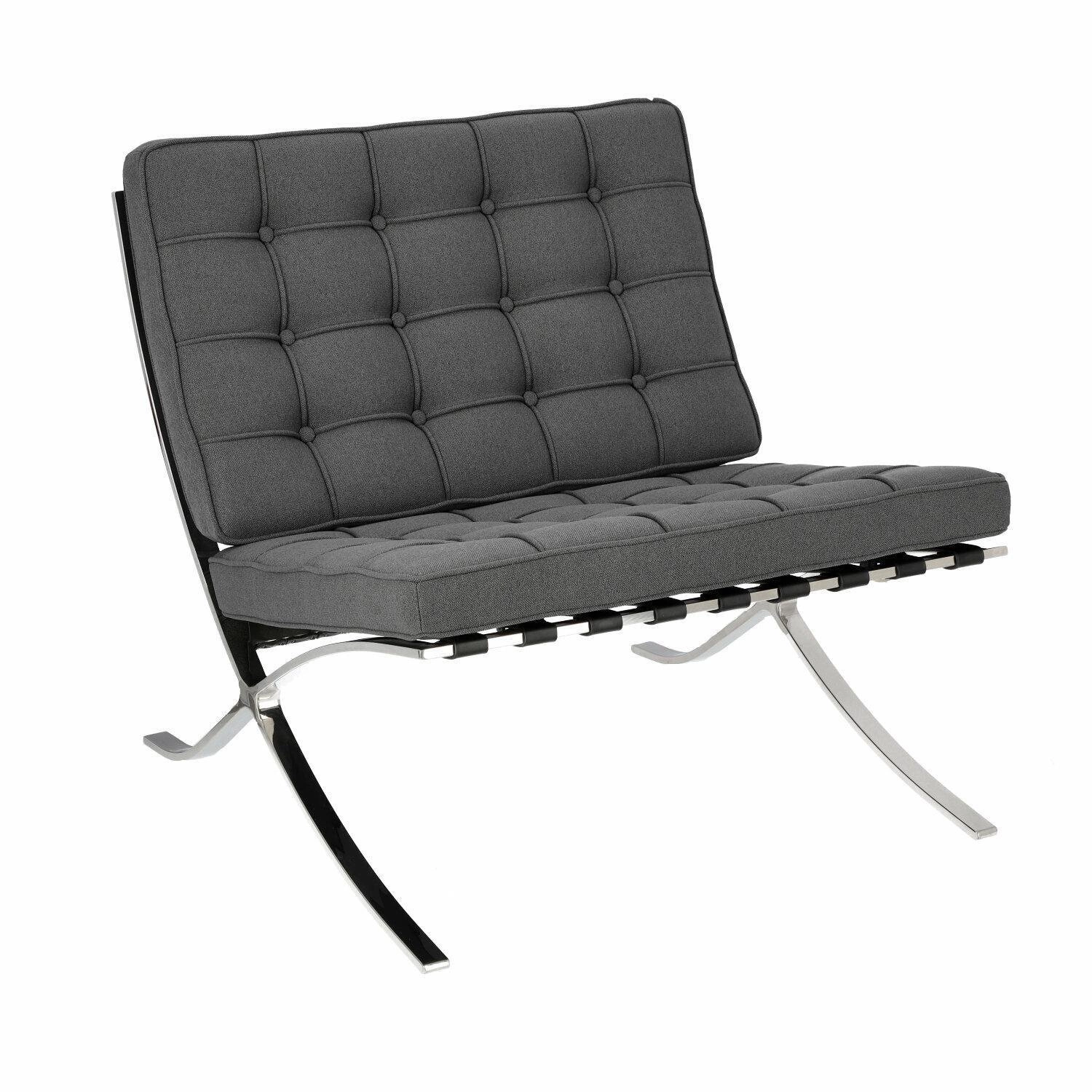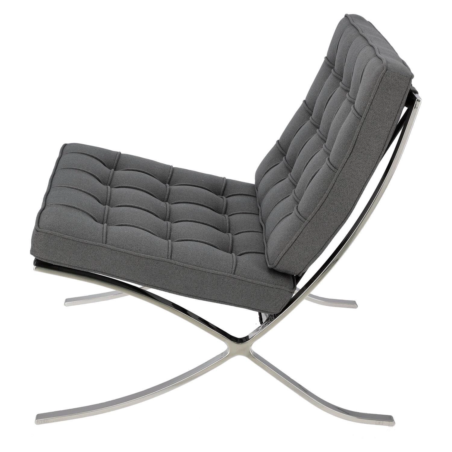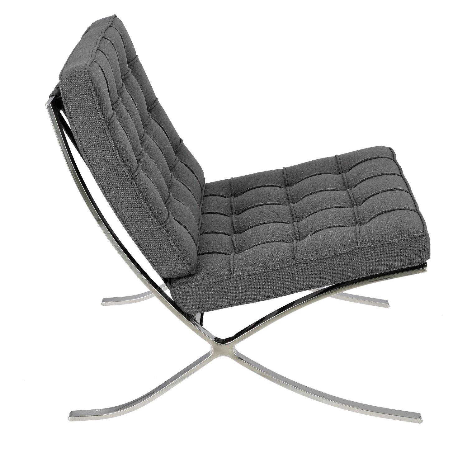 Fotel Barcelona stał się inspiracją do powstania modelu BA1 marki D2.Design, czyli jego wiernego odwzorowania. Powyginana w kształt litery "X" chromowana podstawa oraz pikowana w kwadraty tapicerka, to cechy charakterystyczne tego klasycznego projektu. Połączenie lekkiej podstawy z chromowanej stali z obszernym tapicerowanym siedziskiem pozwoliło stworzyć niezwykle wygodny fotel tapicerowany, który stał się synonimem luksusu i elegancji. Tkanina użyta do poduszek fotela jest bardzo łatwa w czyszczeniu, a zarazem trudno palna i spełnia normy ognioodporne.