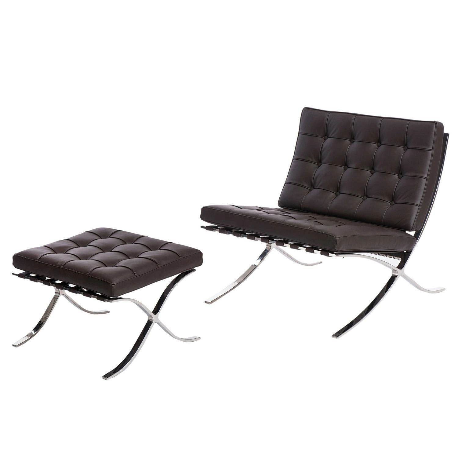 Fotel BA1 jestinspirowany projektem fotela Barcelona. Barcelona to zaprojektowany w 1929 roku fotel, który powstał na zamówienie i stanął w niemieckim pawilonie na wystawie w Barcelonie.,Charakterystycznie powyginana w kształt litery "X" chromowana podstawa oraz pikowana w kwadraty naturalna skóra to najbardziej charakterystyczne cechy tego fotela. Uzupełnieniem tego fotela jest Barcelona Ottoman i Barcelona,stolik.,Fotel wykonany całkowicie ze skóry naturalnej.. Dopełnieniem fotela jest podnóżek, który komponuje się doskonale z fotelem.